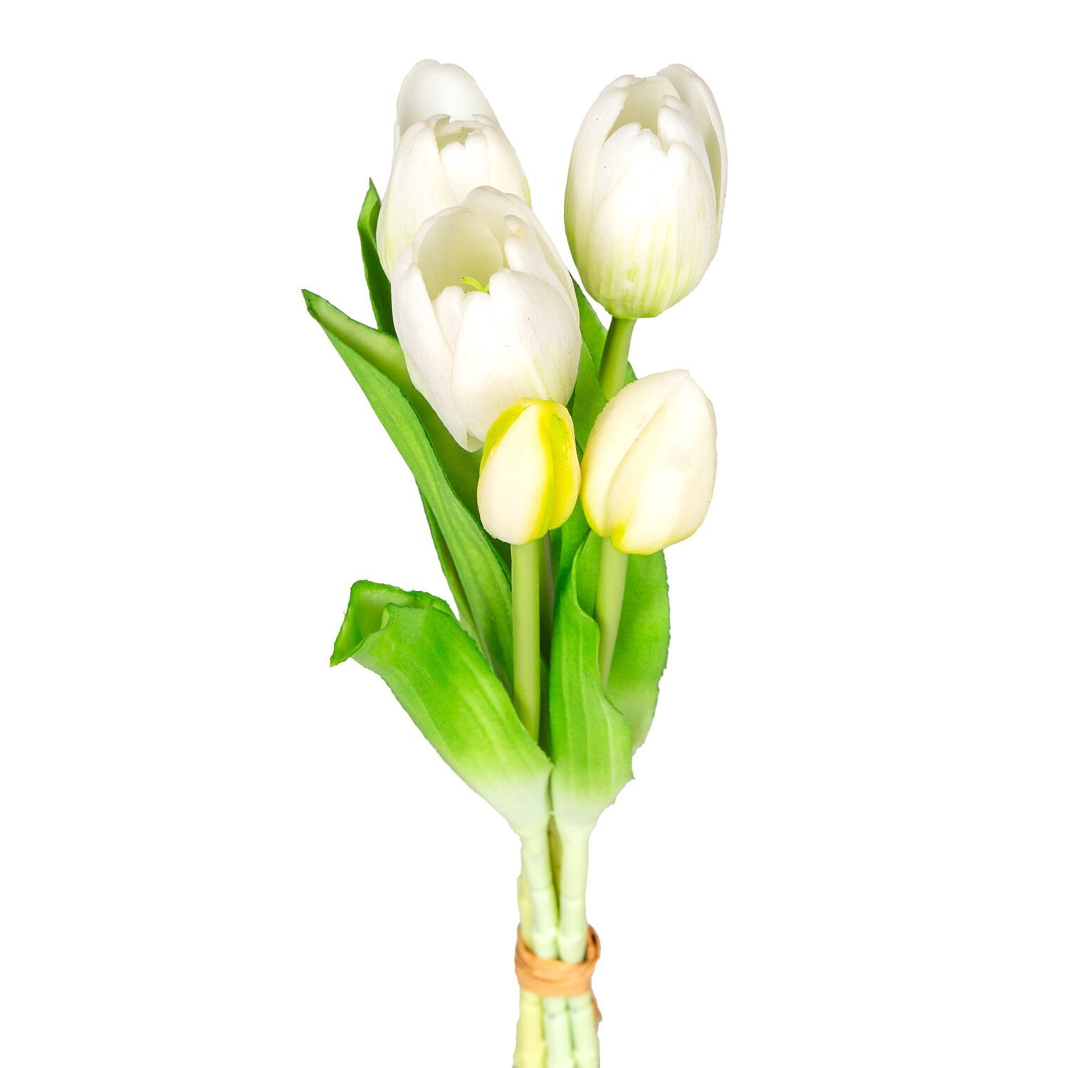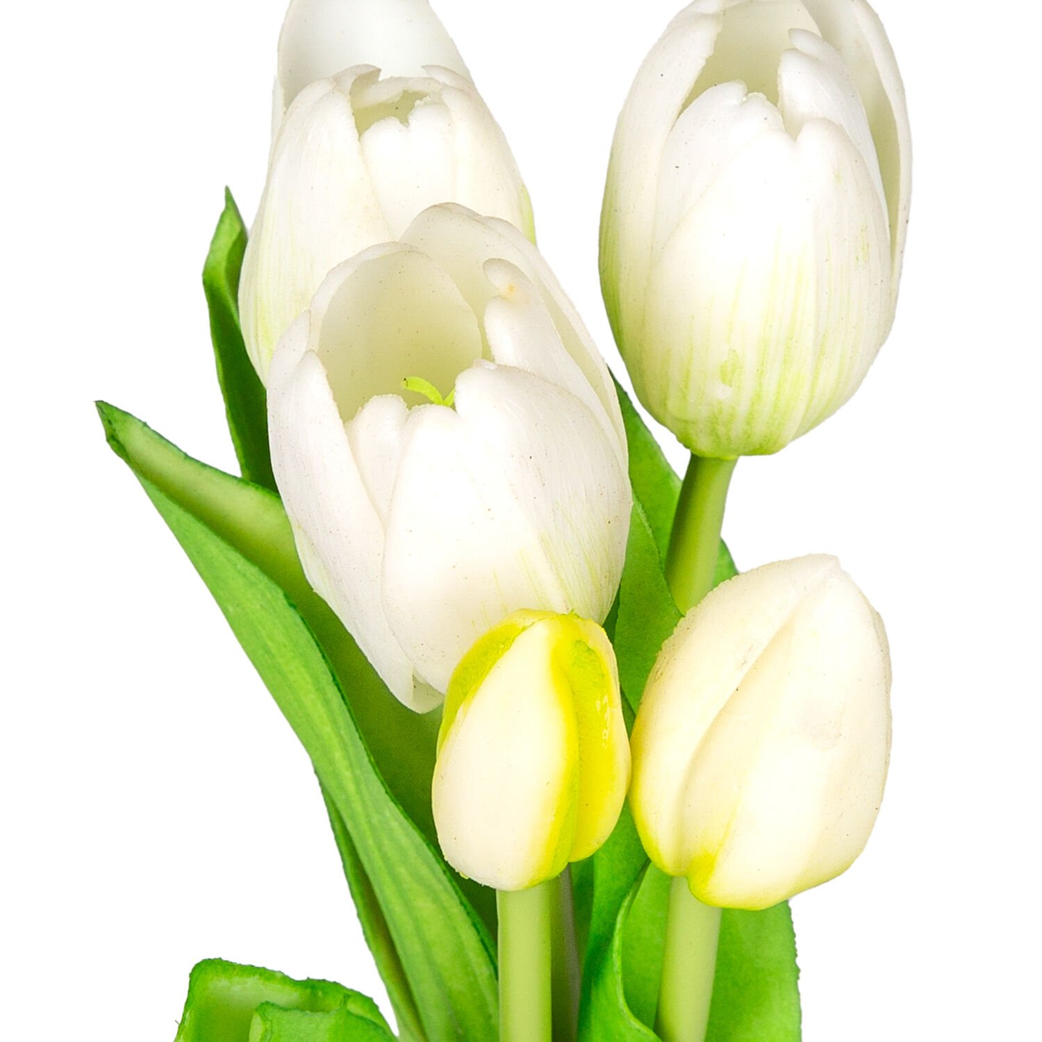 Yapay Lale Demet, Beyaz - 3 Çiçek, 2 Tomurcuklu, 33 cm