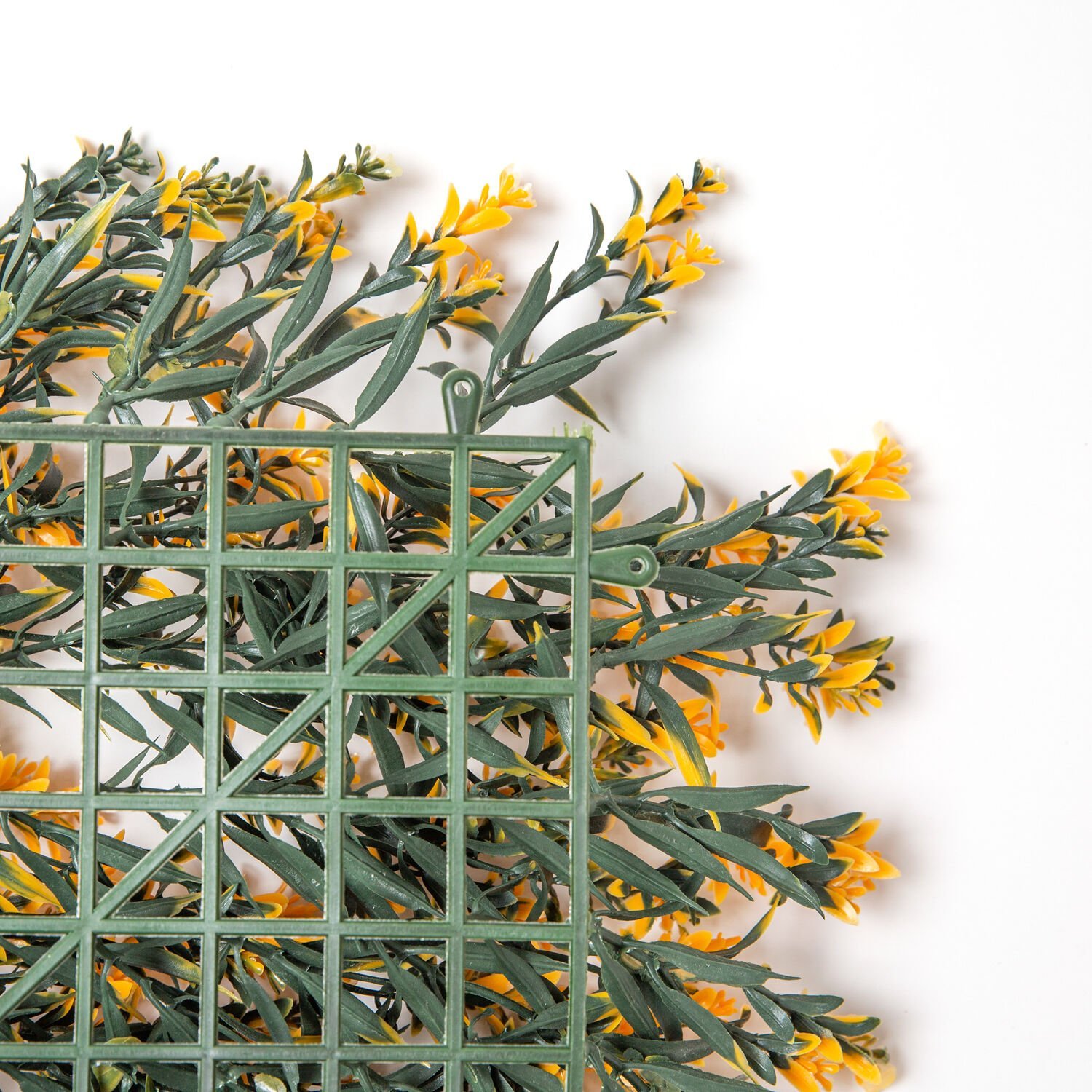 Yapay Nergis Kare Tabaka Model Duvar Bitki Kaplaması kaliteli yapay U.V. dayanımlı plastik malzemeden üretilmiştir. Birkaç tanesi bir araya getirilerek istediğiniz ölçü ve büyüklükte yapay çiçek kaplama duvarı elde edebilirsiniz. Plastik zemin üzerindeki çıkıntılara 1.kalite yapay yapraklar takılmıştır. Tavan ve yatay duvar uygulamalarında plastik ızgarayı silikon ile duvara yapıştırabilirsiniz. Ürünümüz her türlü zemine montajına uygundur.