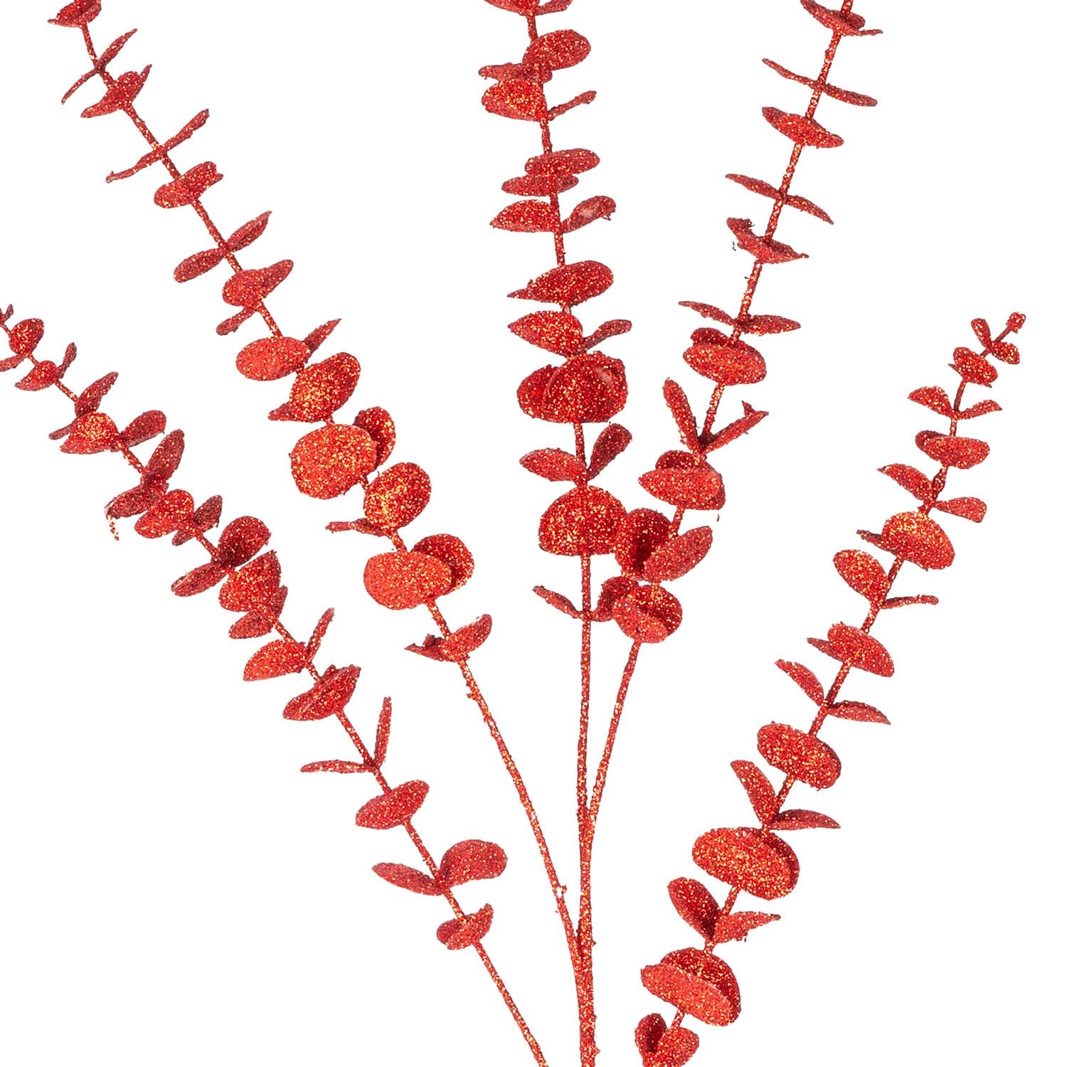 Yapay Okaliptus, Simli Kırmızı: 85 cm Uzunluğunda Modern ve Narin Yılbaşı Zarafeti
