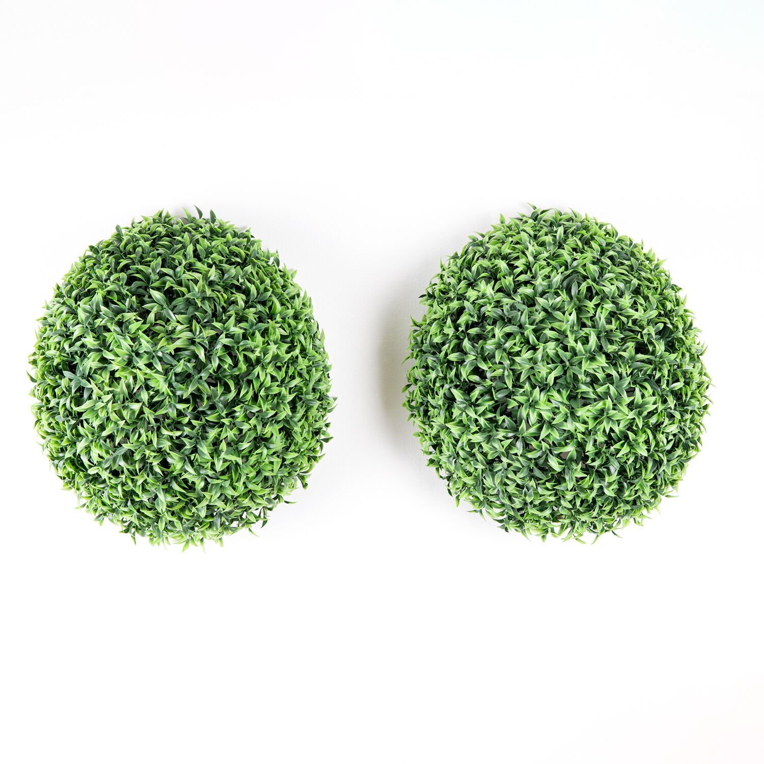 Yapay Şimşir Top, Yeşil - 2 Adet Yarım Top, UV Korumalı, Dış Mekan Uyumlu, 35 cm