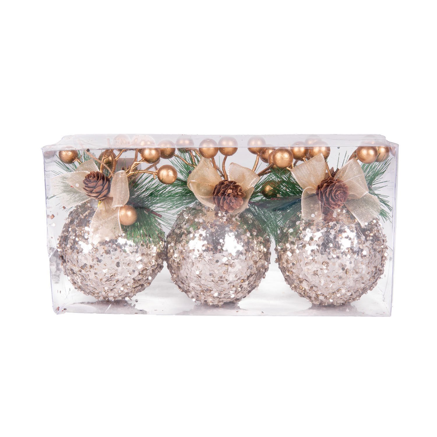 Yılbaşı Ağaç Süsü, Yılbaşı Topu, Şampanya - 3'lü Set, 8 cm