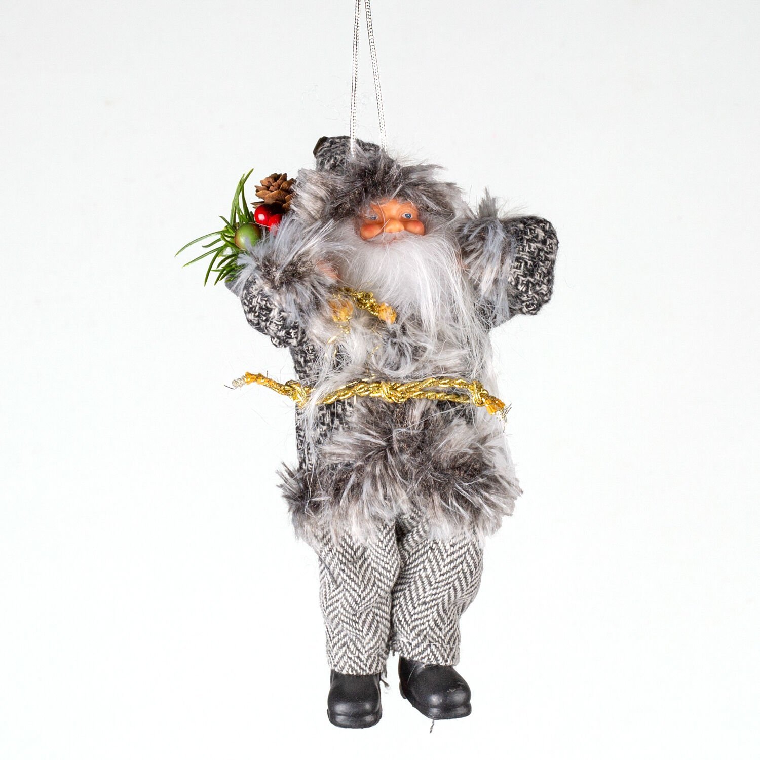 Yılbaşı Ağacı Süsü, Askılı Noel Baba, Gri Elbiseli - 20 cm