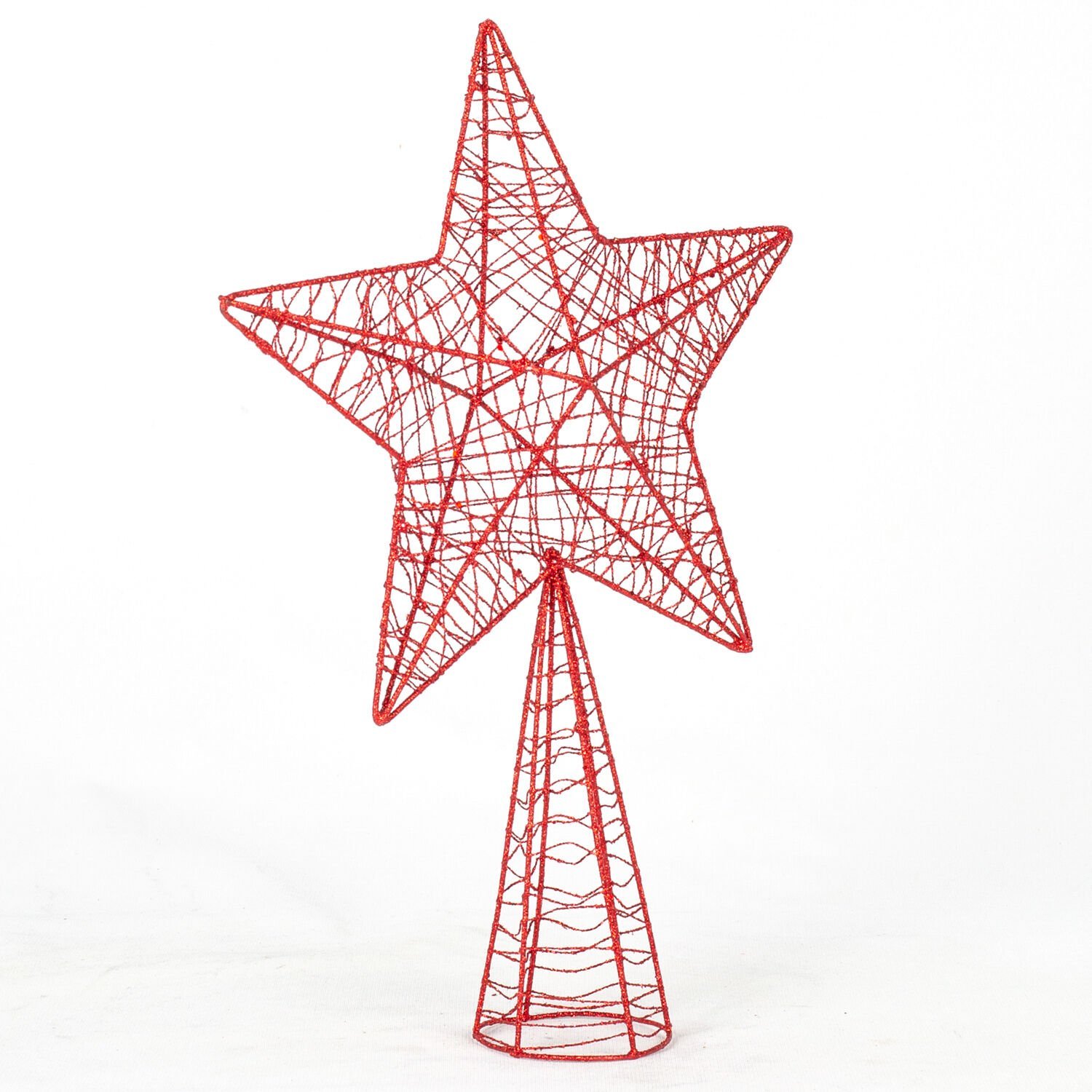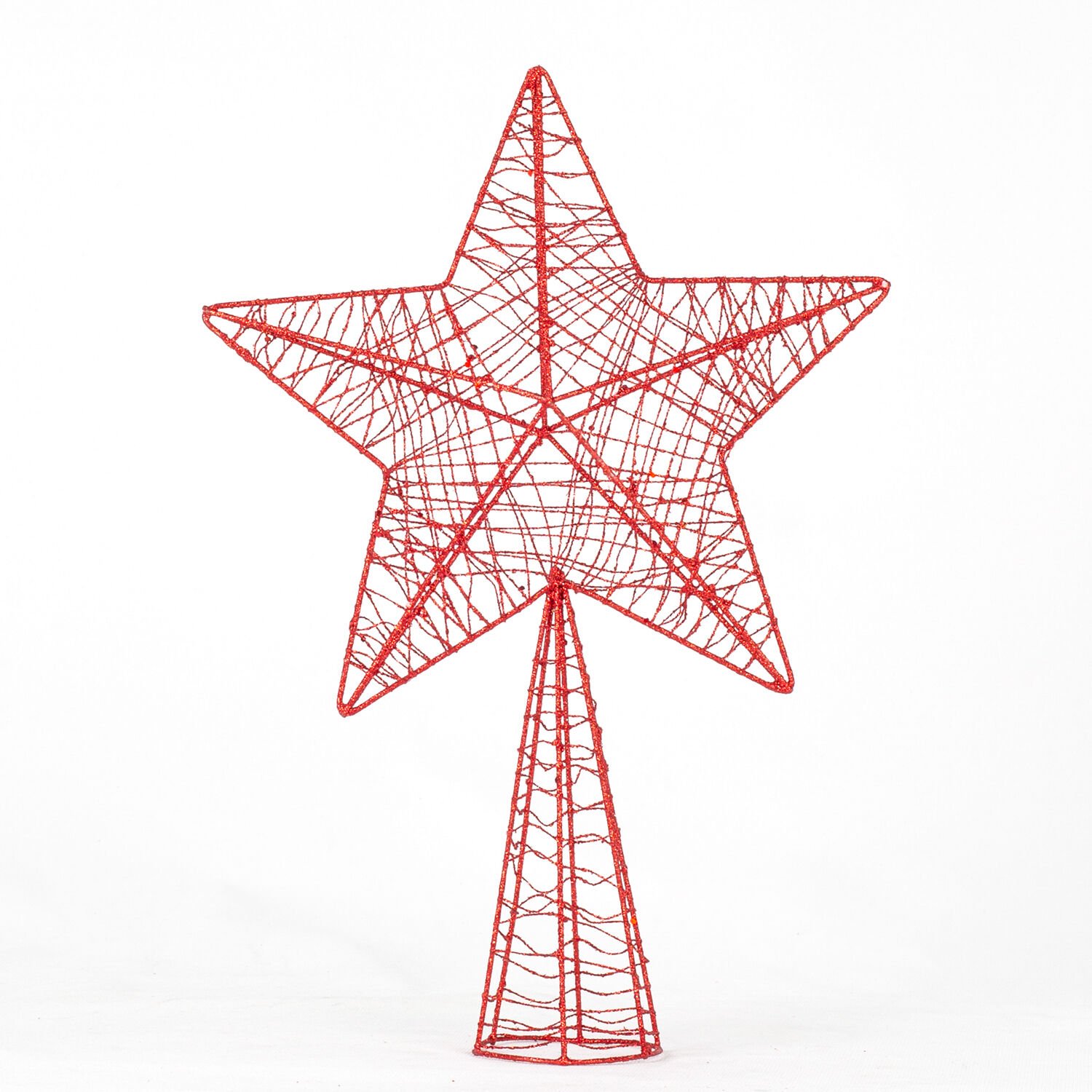 Yılbaşı Ağacı Tepe Yıldızı, Simli, Metal, Kırmızı - 24x7x34 cm