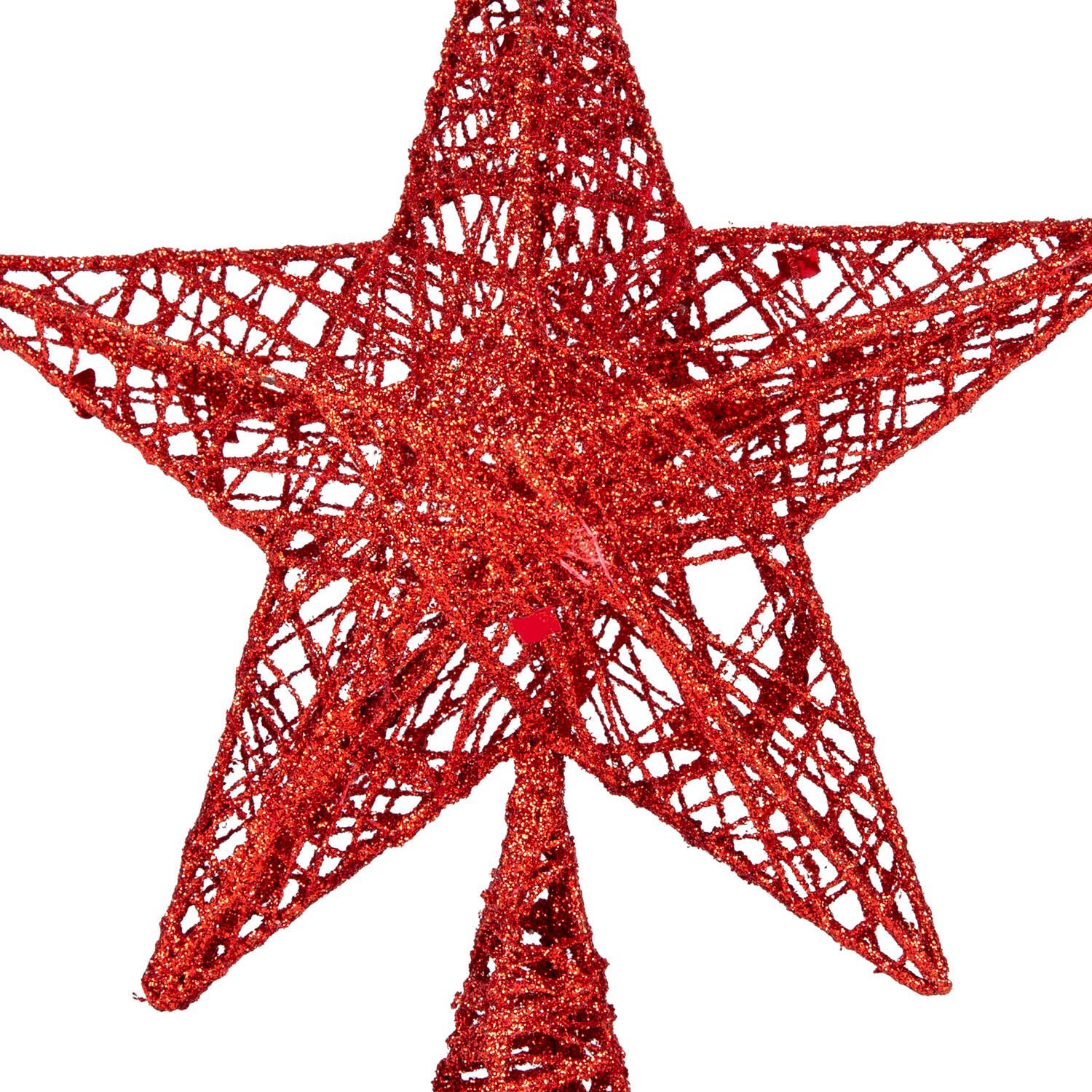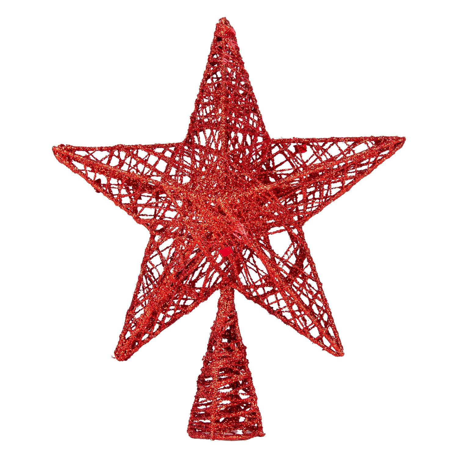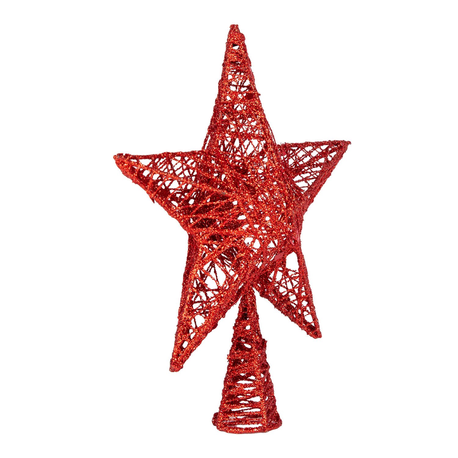 Yılbaşı Çam Ağacı Tepe Süsü (Simli, Kırmızı, 21x23 cm): Ağacınızın Zirvesine Göz Kamaştıran Final Dokunuşu