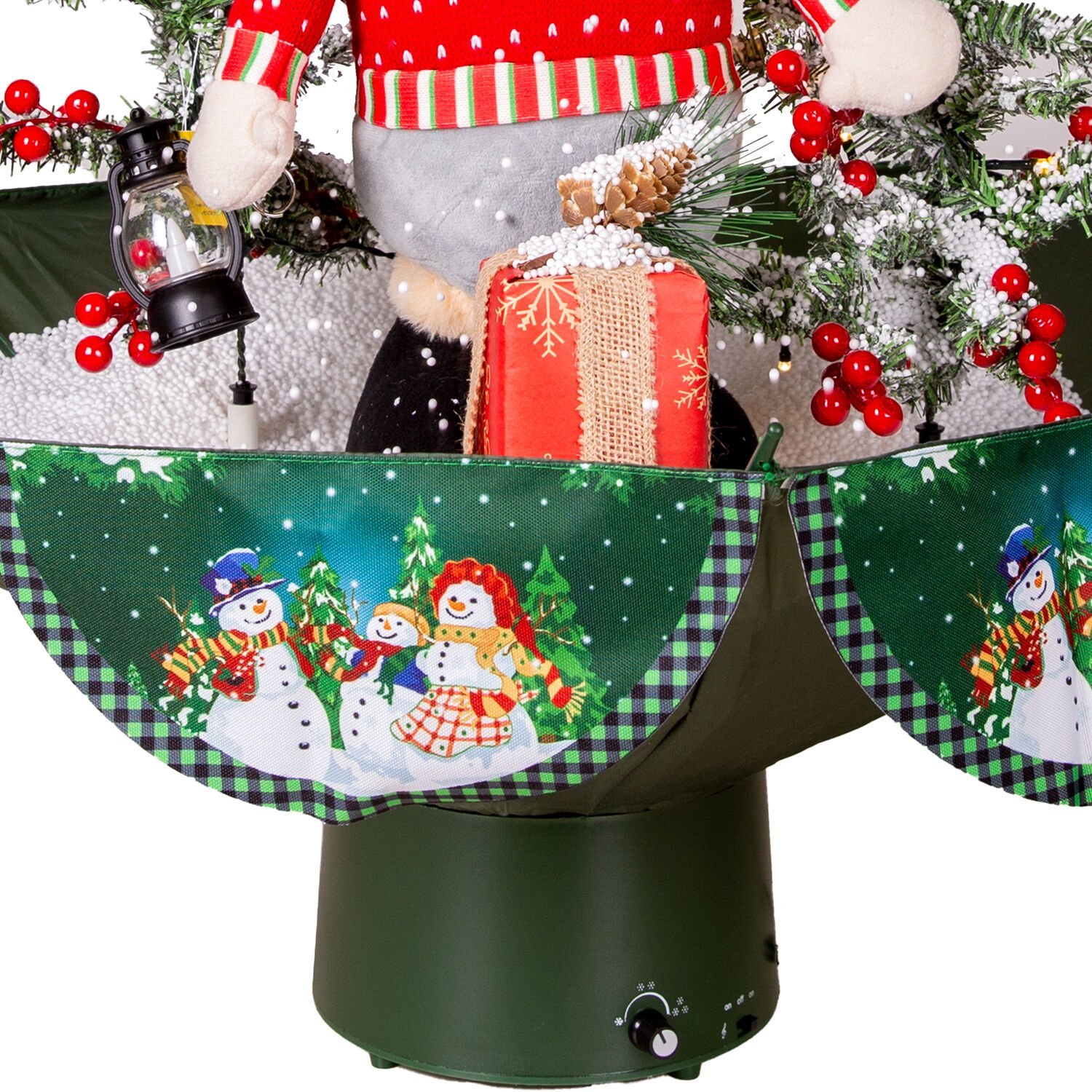 Figürün içerisindeki özel mekanizma, kesintisiz olarak kar tanesi fıskiyesi çalıştırır; bu da karlı bir Noel gecesi illüzyonu yaratarak görsel bir şölen sunar. -