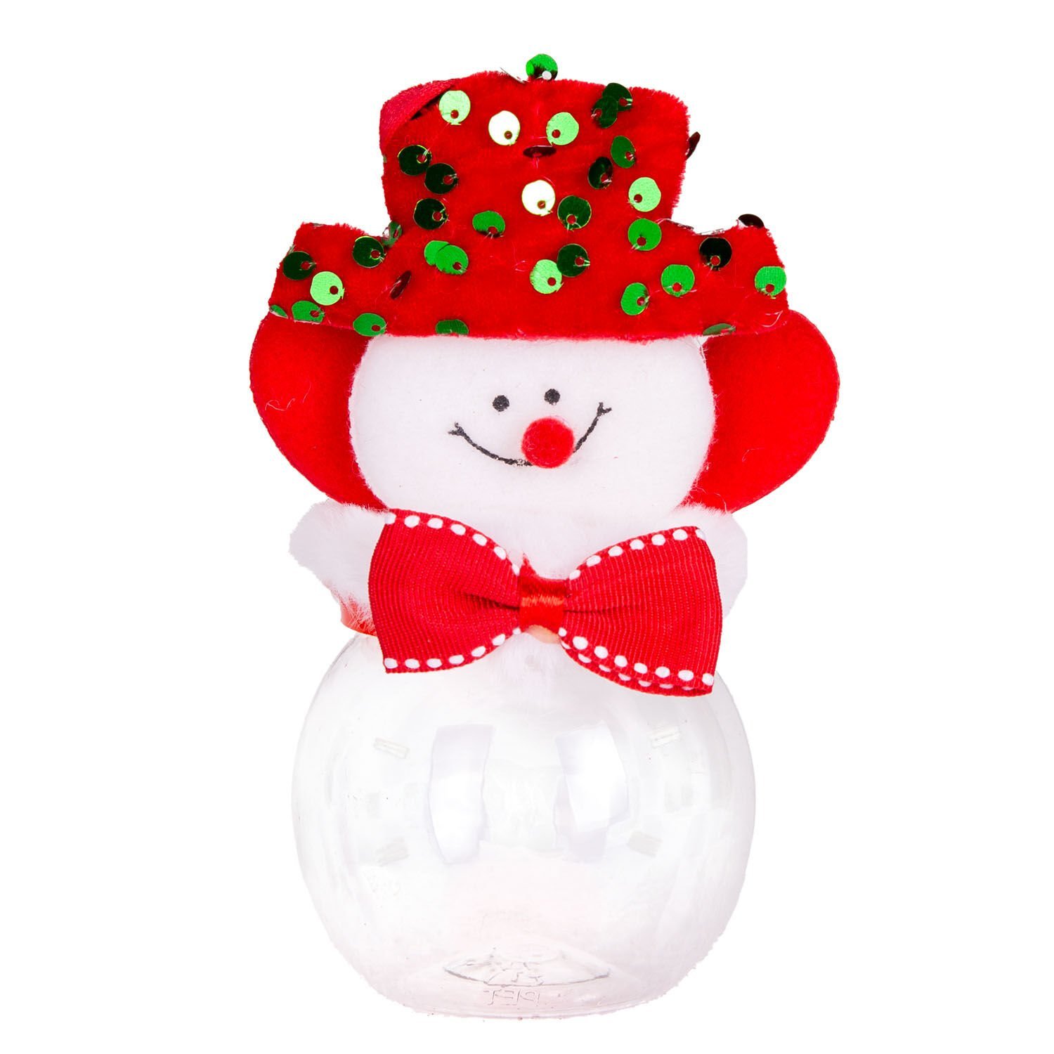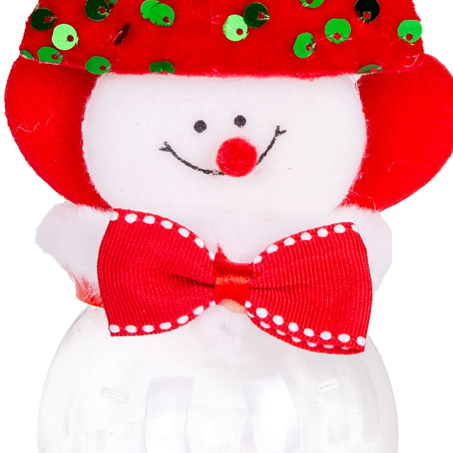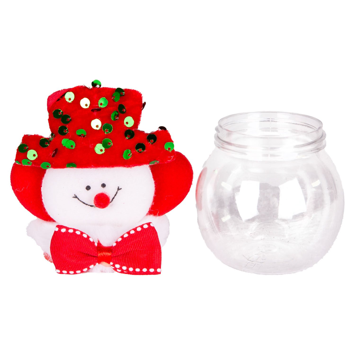 Yılbaşı Kutusu, Kardan Adam Figürlü Kapaklı, Şeffaf, Kırmızı - 9x14 cm