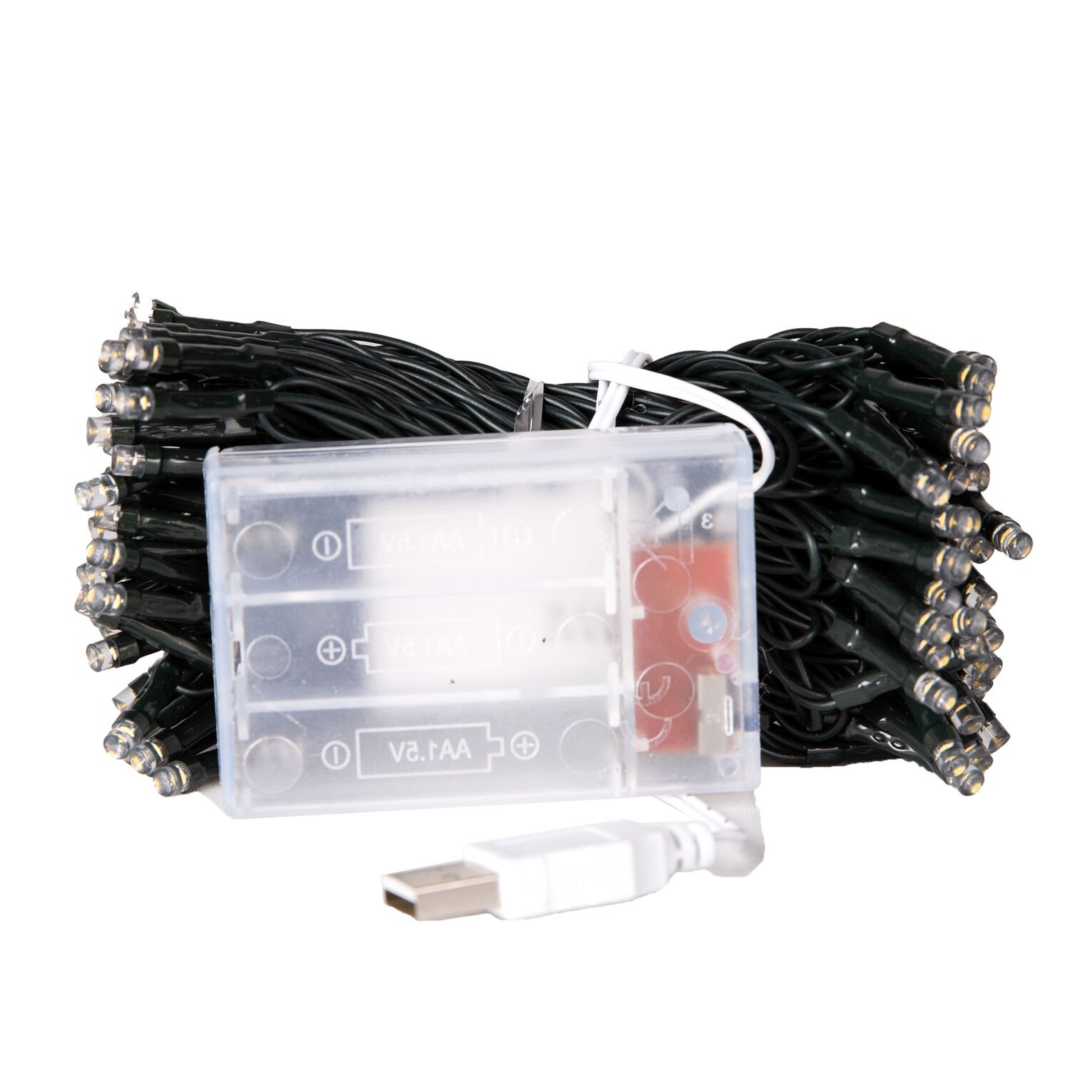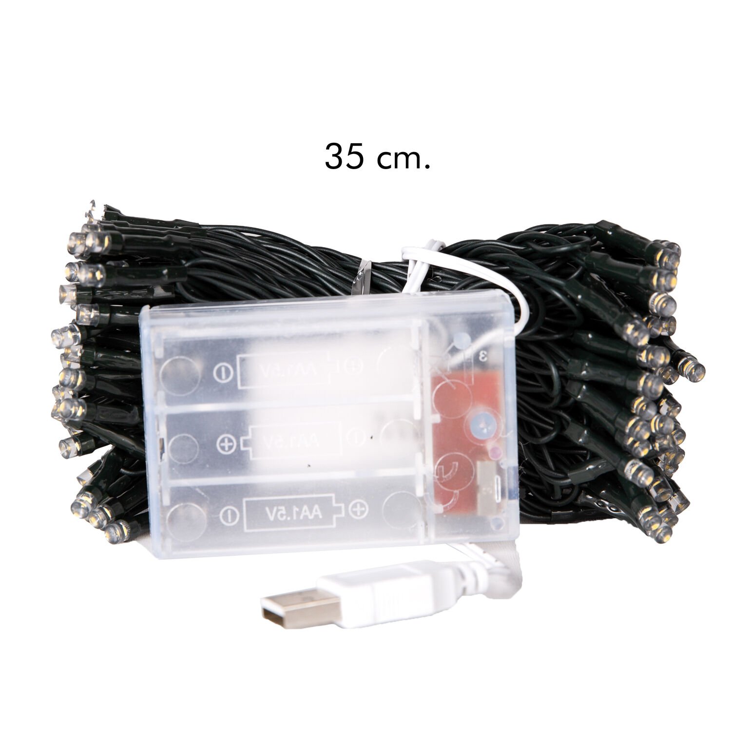 - Malzeme: Yüksek kaliteli LED ampuller, dayanıklı Yeşil PVC kablo, plastik pil kutusu/USB girişi.
