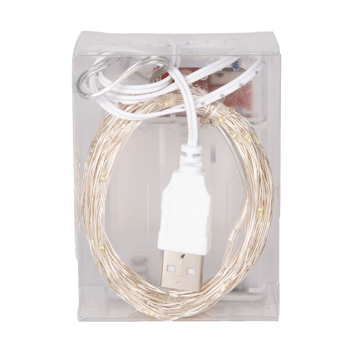 Yılbaşı Led-Peri Işık, Beyaz Işık - 100 Ledli, USB Girişli, Pilli, Şeffaf Kablo, 10 Metre