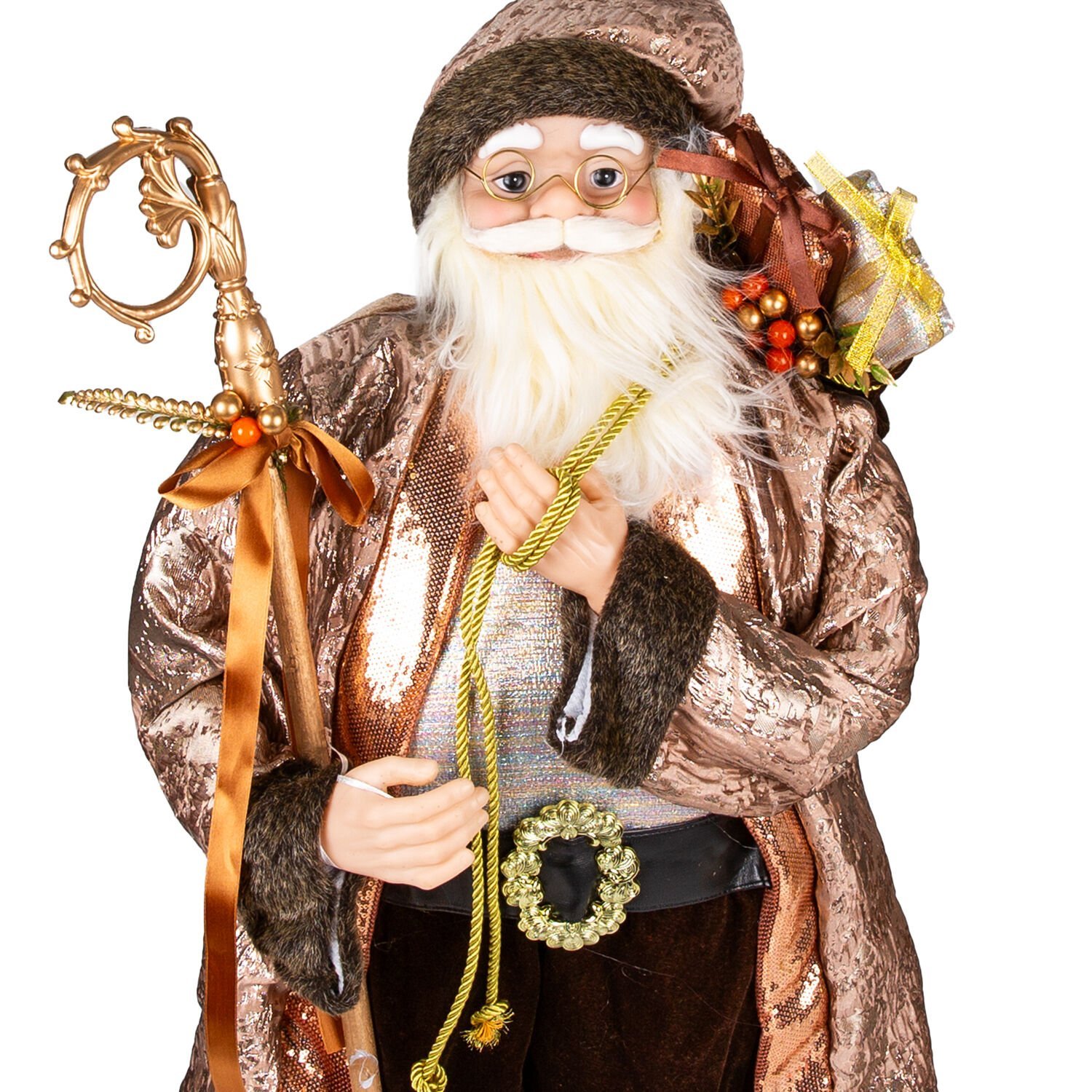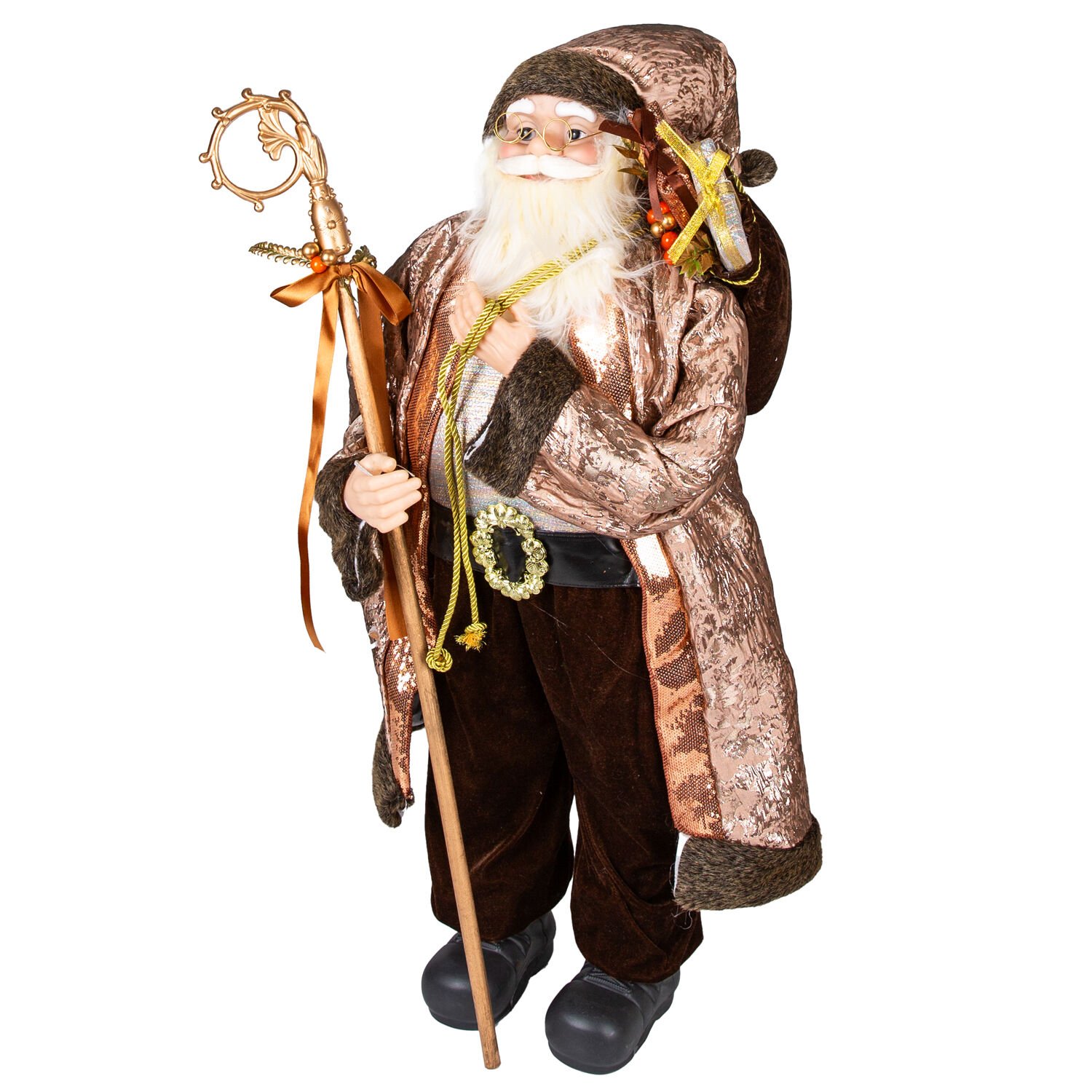 Elindeki asa ve üzerindeki ince detaylar, Noel Baba karakterine bilgelik ve otorite katarken, figürün sanatsal değerini yükseltir. -