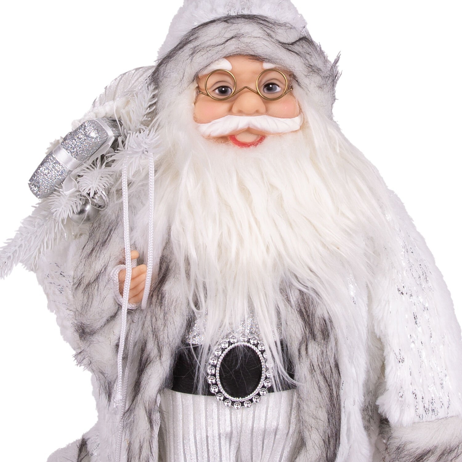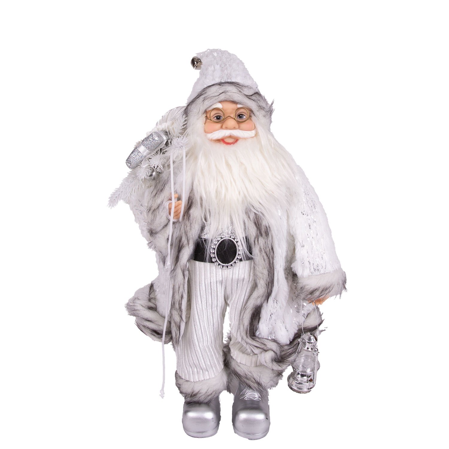 Yılbaşı Noel Baba, Beyaz Hediye Çuvallı, Fenerli, Gümüş-Gri - 45 cm