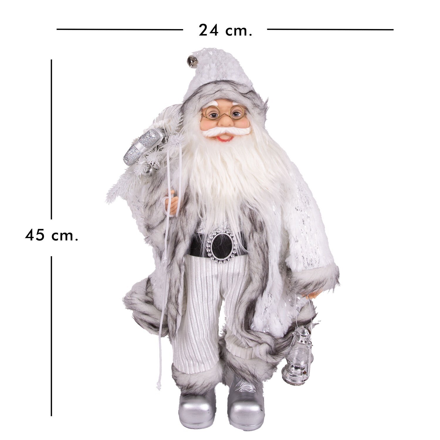 - Paket İçeriği: 1 Adet Fenerli, Beyaz Hediye Çuvallı, Gümüş-Gri Noel Baba Figürü