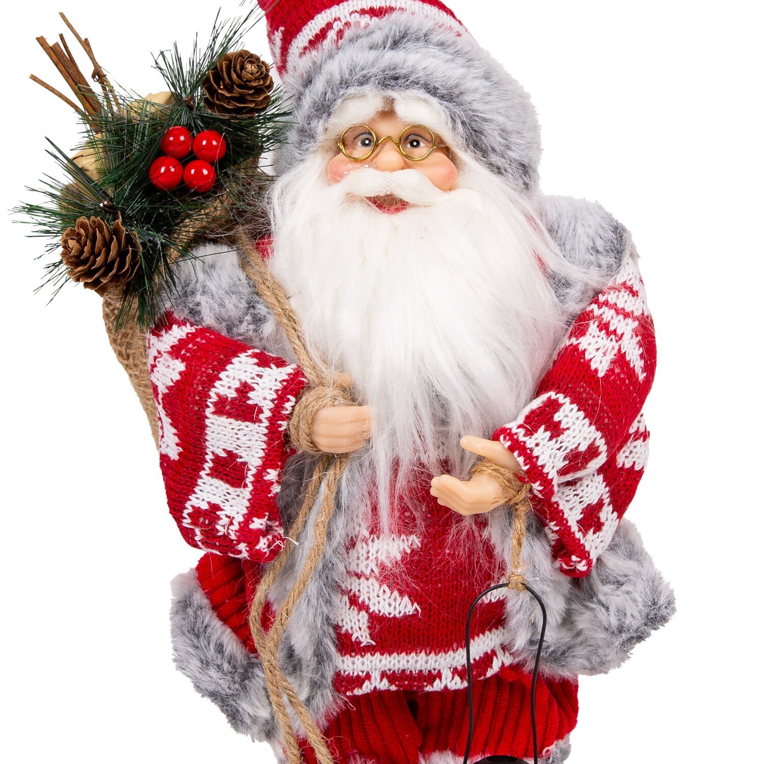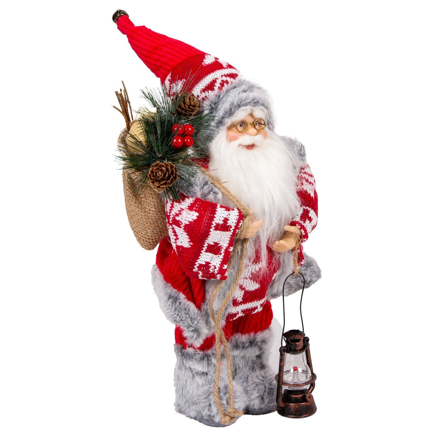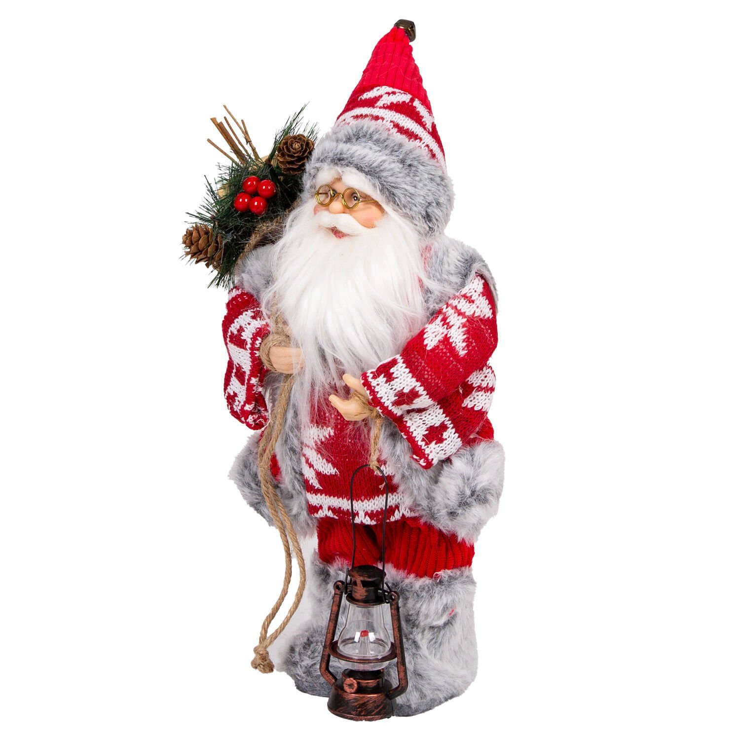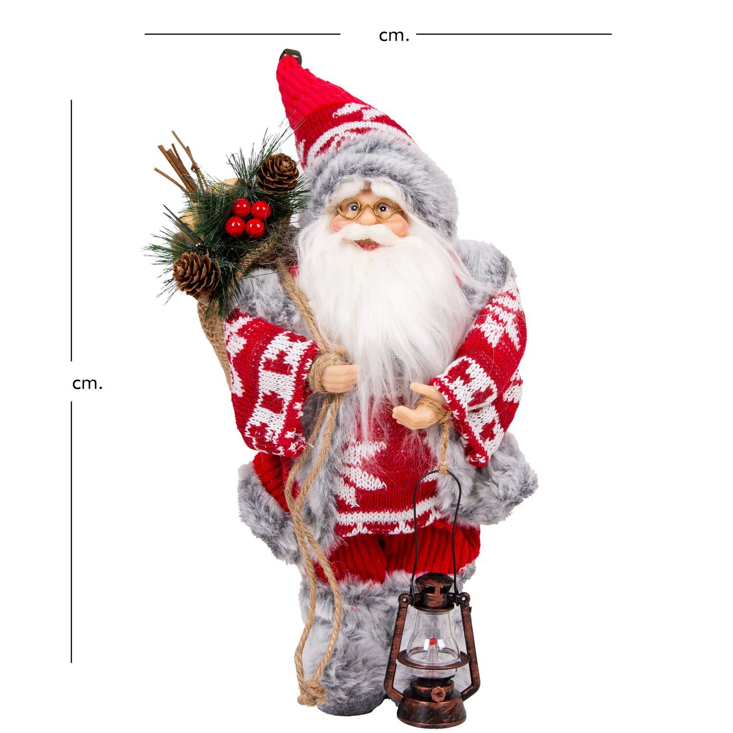Yılbaşı Noel Baba, Fener Taşıyan, Kırmızı-Gri - 20x30 cm