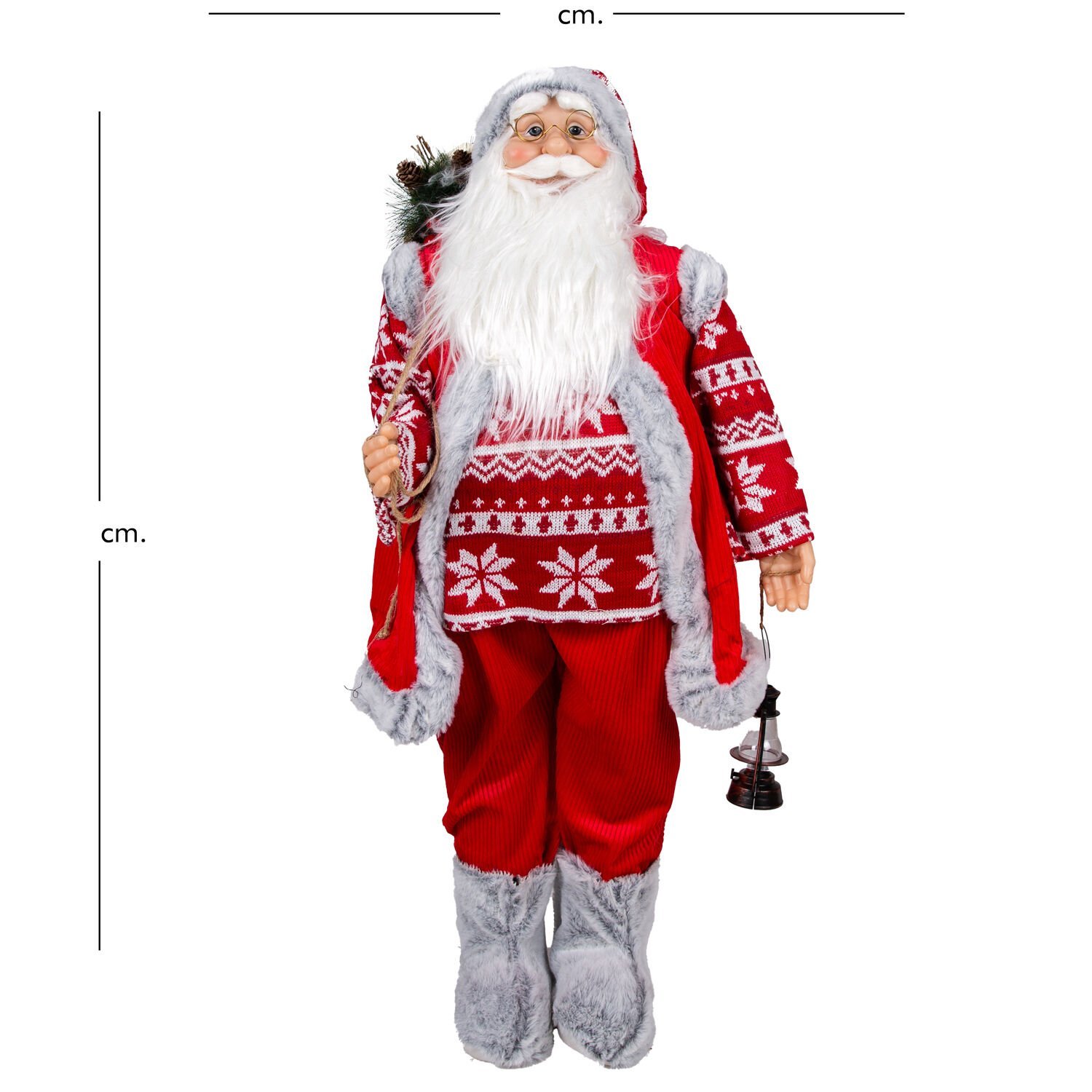 Bu devasa ve göz kamaştırıcı figür, sadece bir süs eşyası değil, adeta bir yılbaşı heykelidir. 90 cm'lik boyutuyla evinizde veya iş yerinizde güçlü bir odak noktası oluşturur. Kırmızı-gri kıyafetleri, figürü lüks ve modern bir çizgiye taşırken, elindeki fener, kış gecelerine huzur ve aydınlık katar. Bu figürü evinize taşıyarak, sadece bir dekorasyon değil, aynı zamanda neşenin, cömertliğin ve aile birliğinin bir sembolünü de mekanınıza davet etmiş olursunuz. Dekorasyonunuzda büyük bir etki yaratmak için doğru tercih.