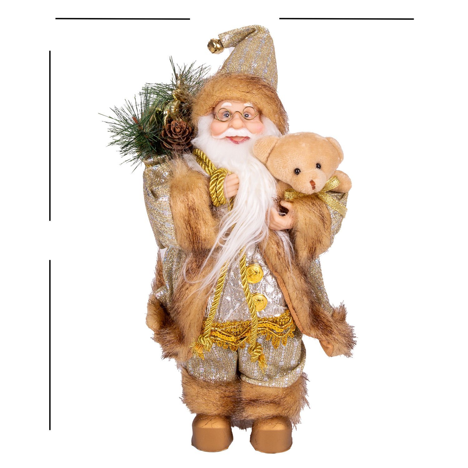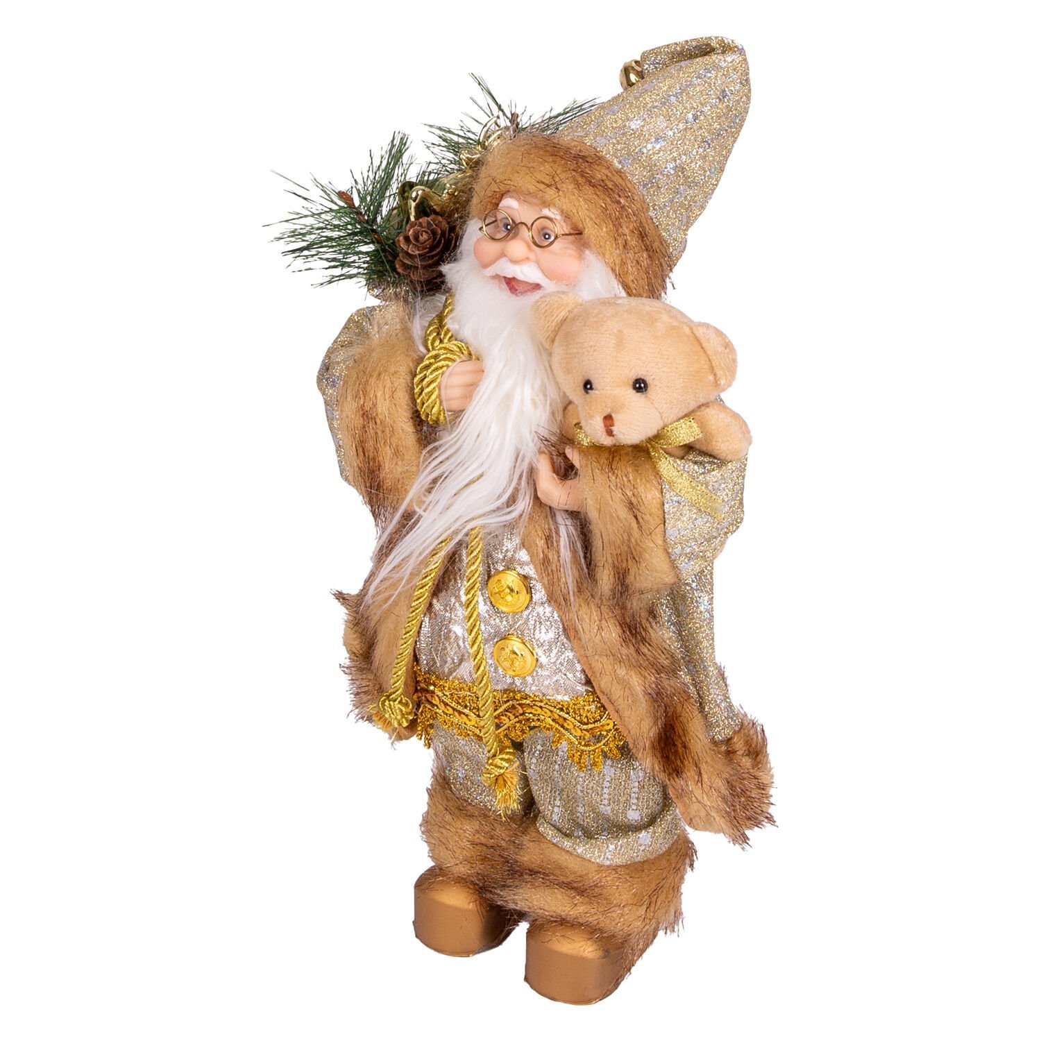 Yılbaşı Noel Baba Figürü: Gold Detaylı, Pelüş Ayılı 30 cm İle Her Köşede Zarif Şıklık Yaratın