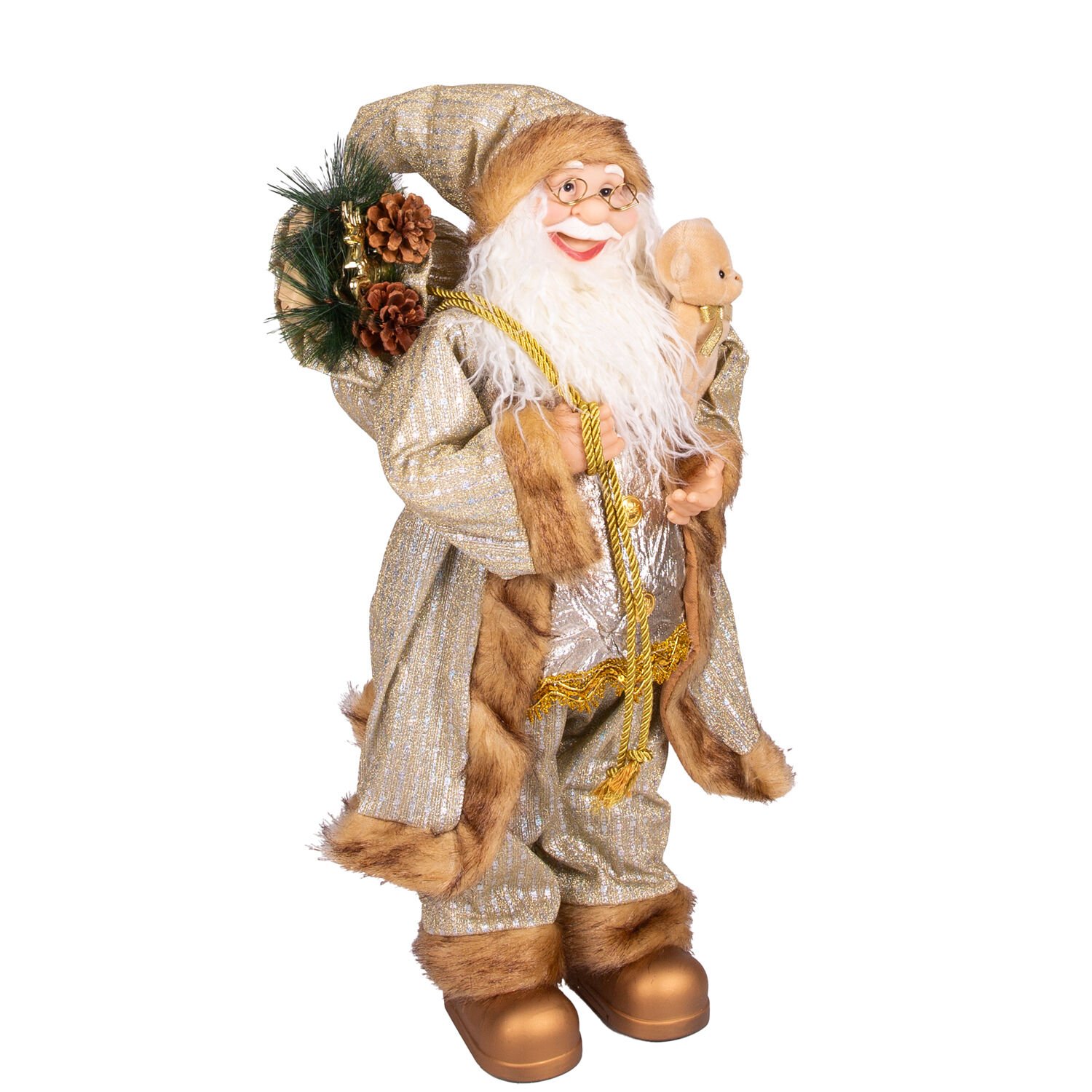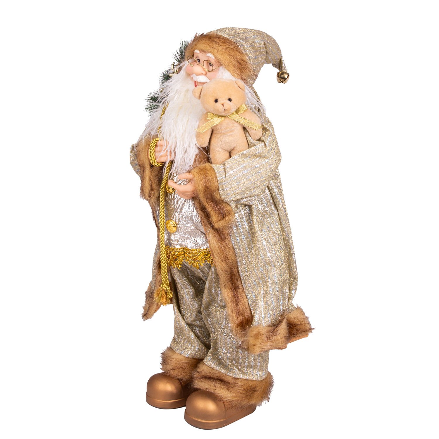 Yılbaşı Noel Baba Figürü: Gold Detaylı, Pelüş Ayılı 60 cm İle Dekorasyonunuzda İhtişamlı Bir Fark Yaratın