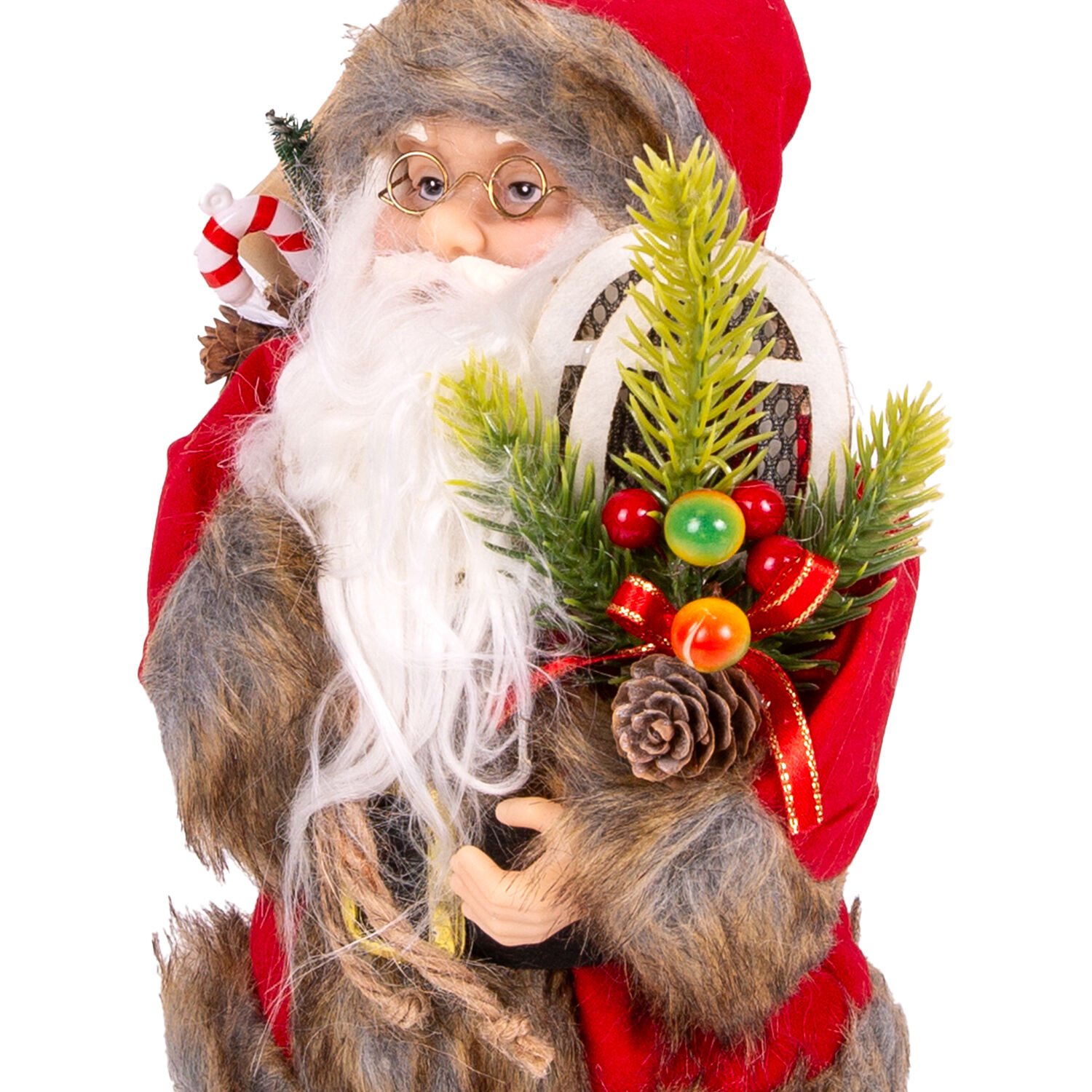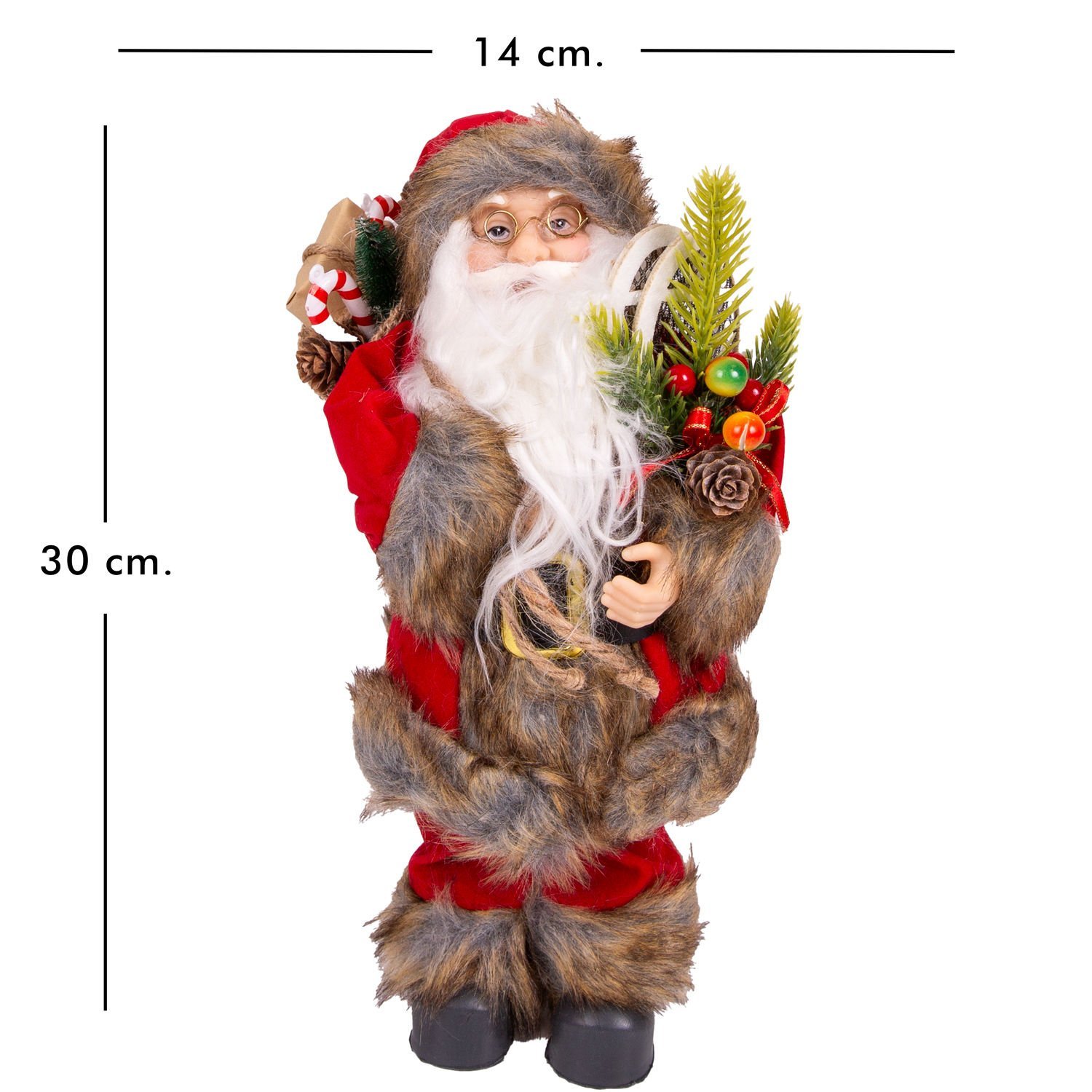 Yılbaşı Noel Baba, Hediye Çuvallı, Yılbaşı Dekorlu, Kırmızı - 30 cm