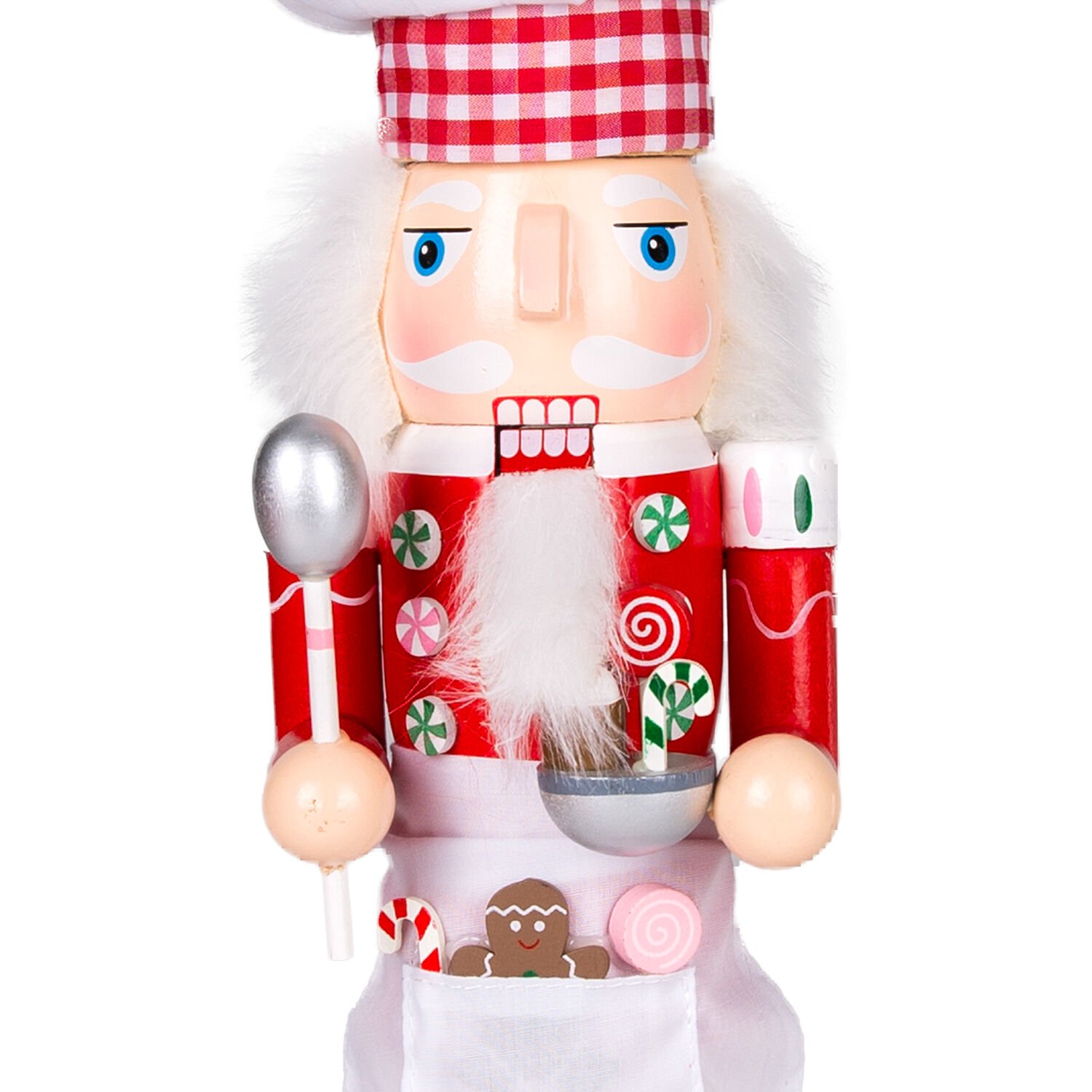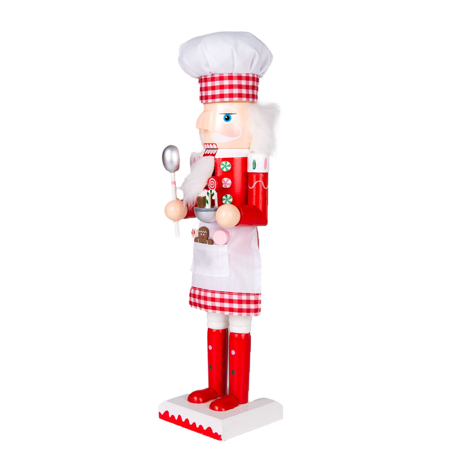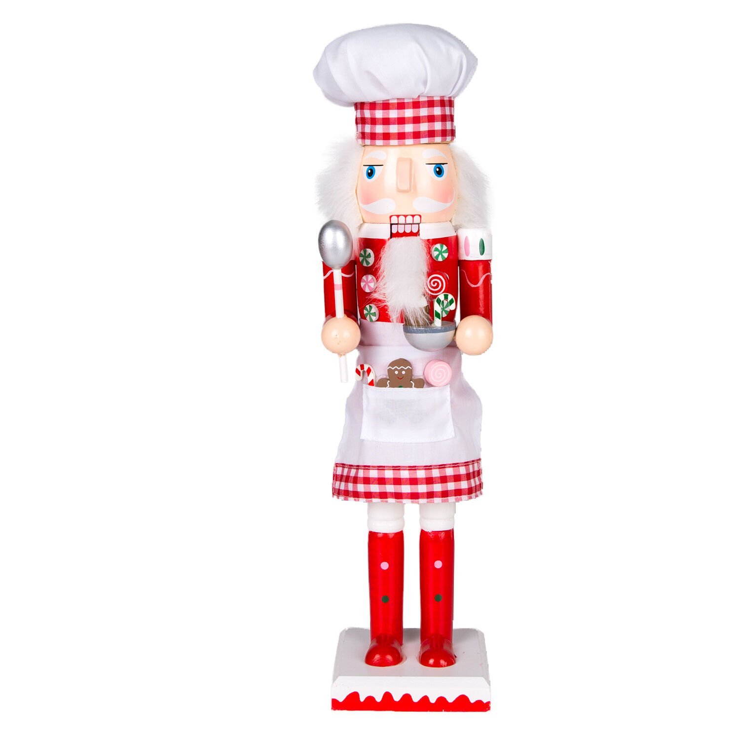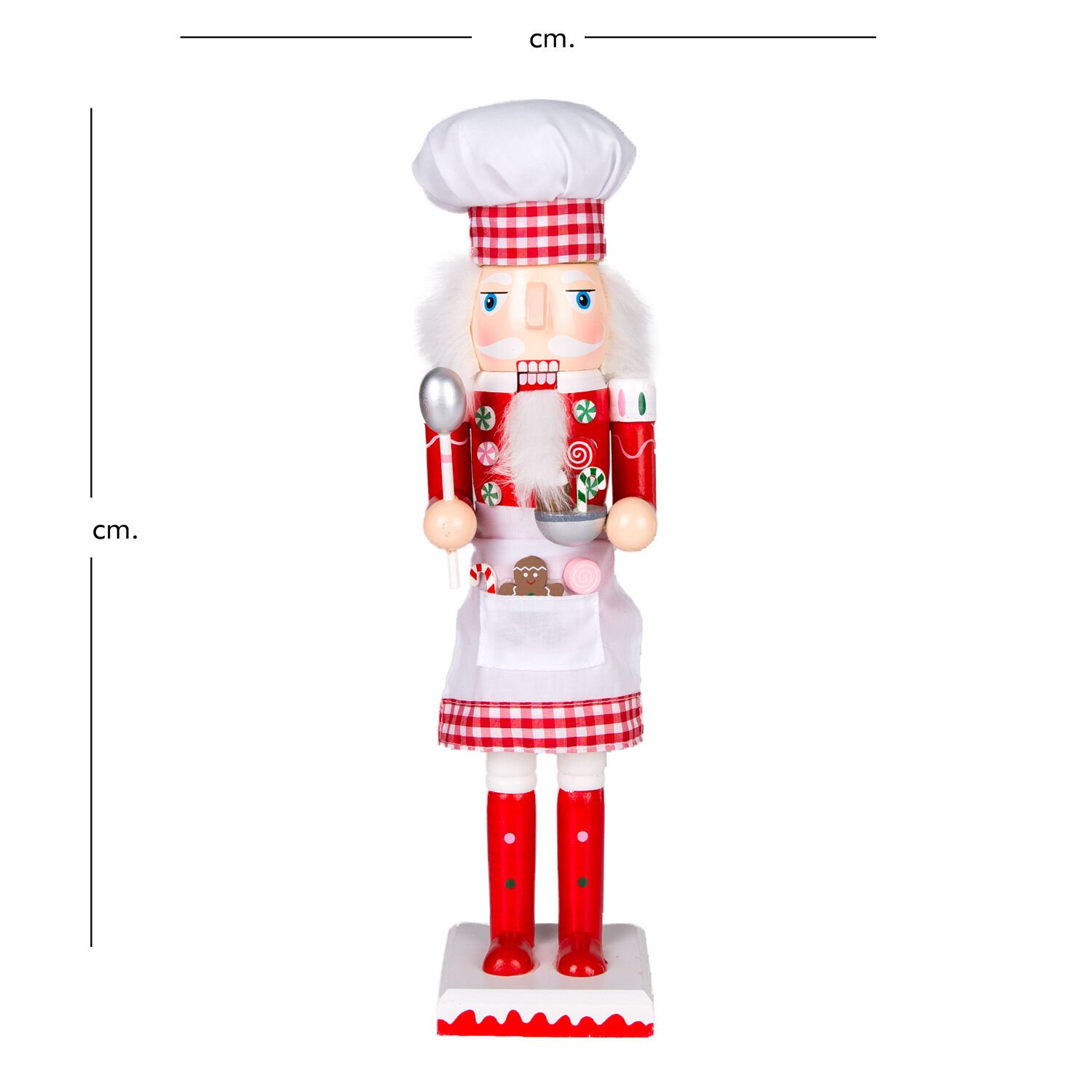 Yılbaşı Süsü, Ahşap Aşçı, Kırmızı-Beyaz - Önlüklü, Elinde kase ve kepçe tutan, 8,5x38 cm