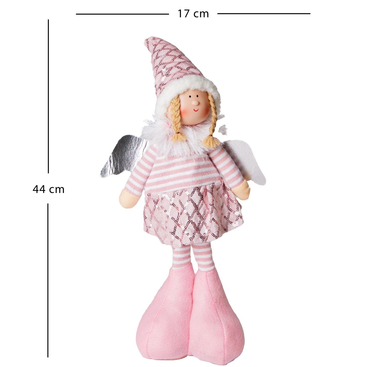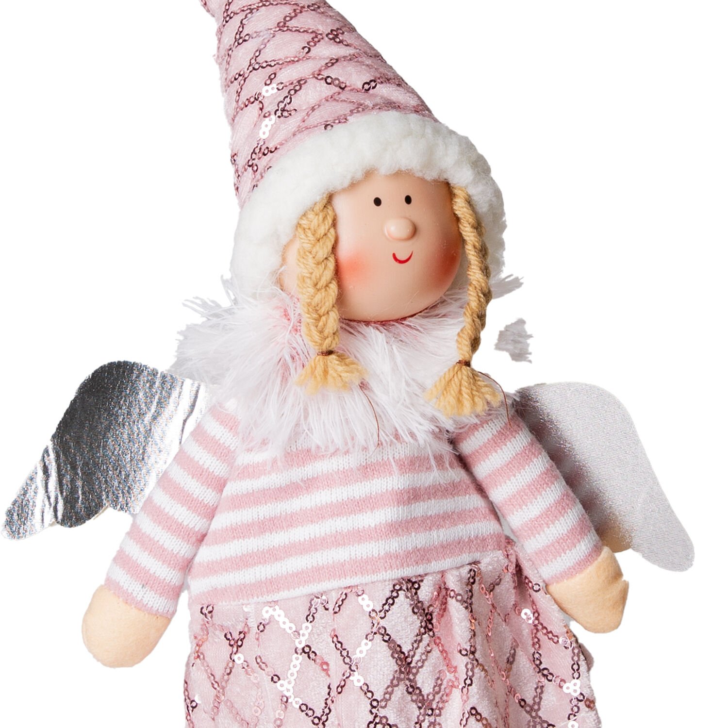 Yılbaşı Ayakta Kanatlı Peri Figürü (44 cm, Şeritli Kazak/Pembe Etek): Eğlenceli ve Renkli Tasarımıyla Neşe Saçan Masalsı Süs