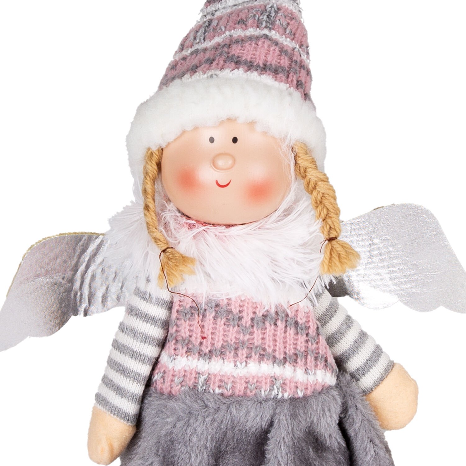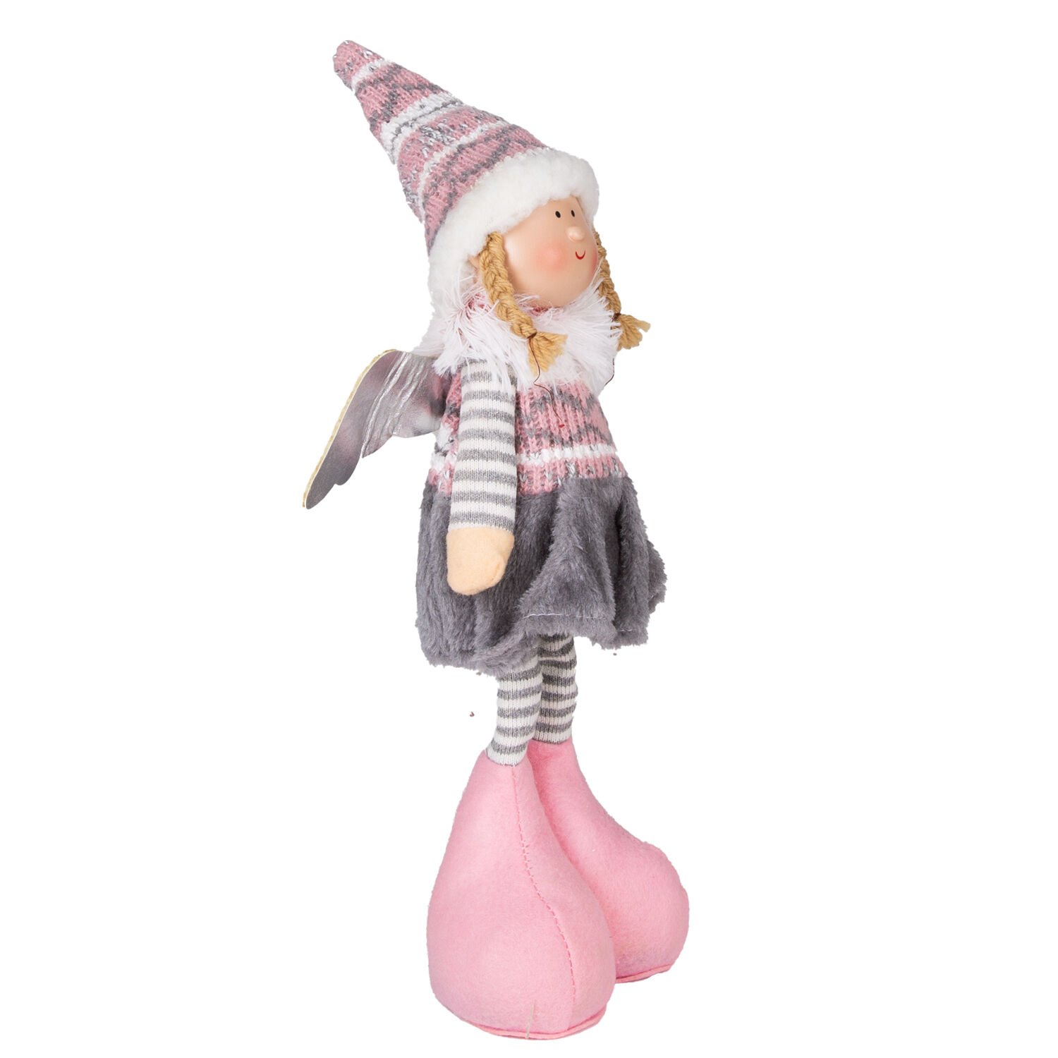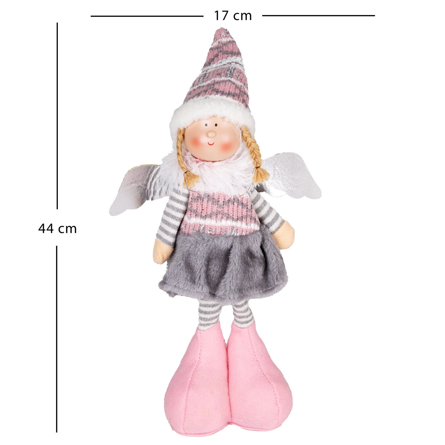 Yılbaşı Ayakta Peri Figürü (44 cm, Gri-Pembe): Gri Etek ve Pembe Ayakkabılarla Ayakta Duran Şirin ve Masalsı Süs