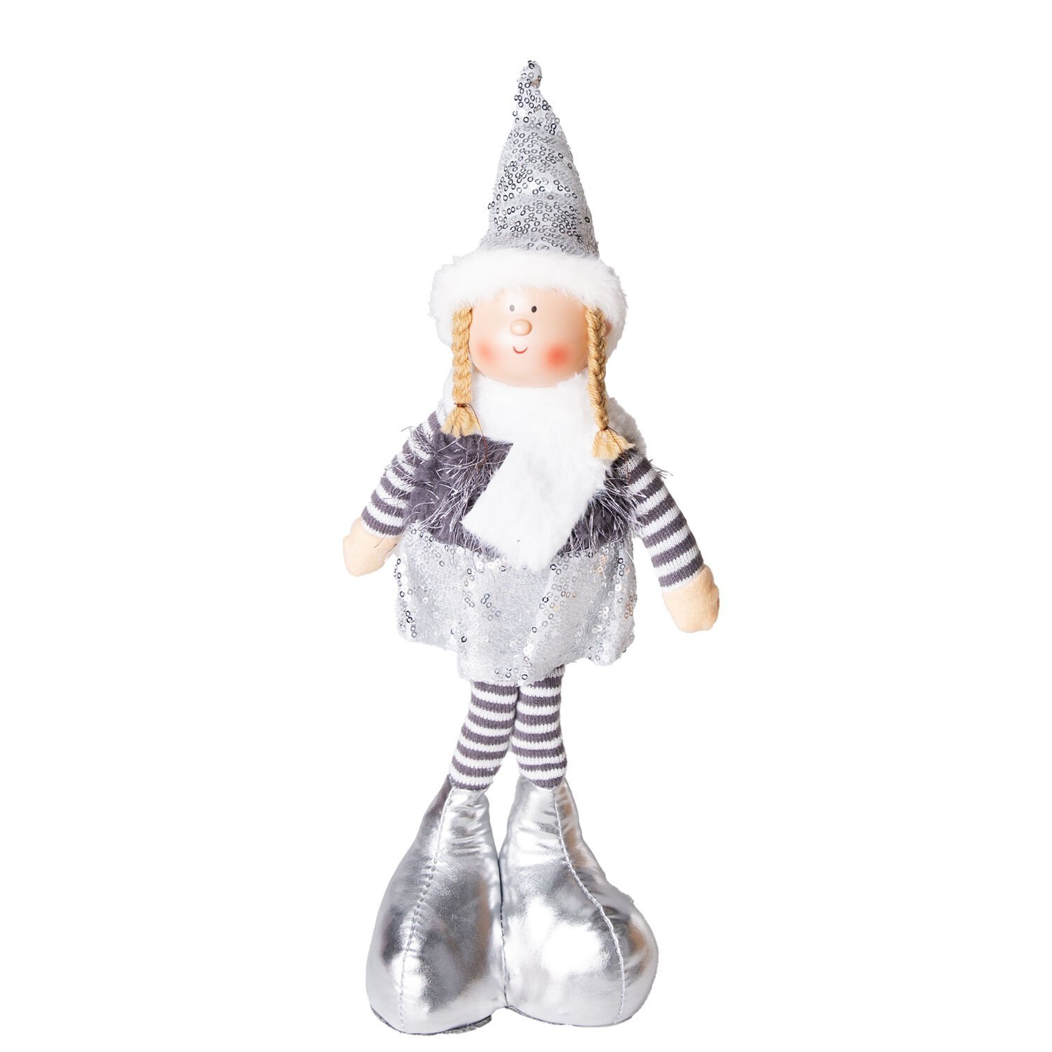Yılbaşı Ayakta Peri Figürü (44 cm, Gri Tütü Etekli): Grinin Zarafeti ve Tütü Eteğin Hafifliğiyle Evinizin Her Köşesine Şıklık