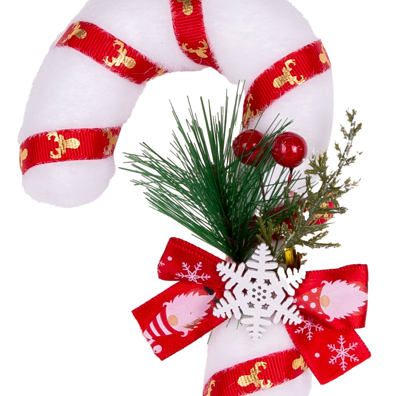 Yılbaşı Süsü, Baston, Yılbaşı Dekorlu, Kırmızı-Beyaz - 10x26 cm