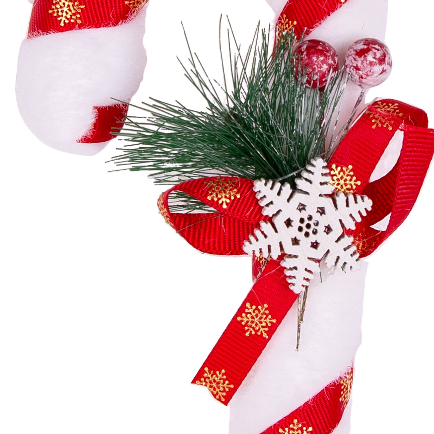 Yılbaşı Süsü, Baston, Yılbaşı Dekorlu, Kırmızı-Beyaz - 9x21 cm