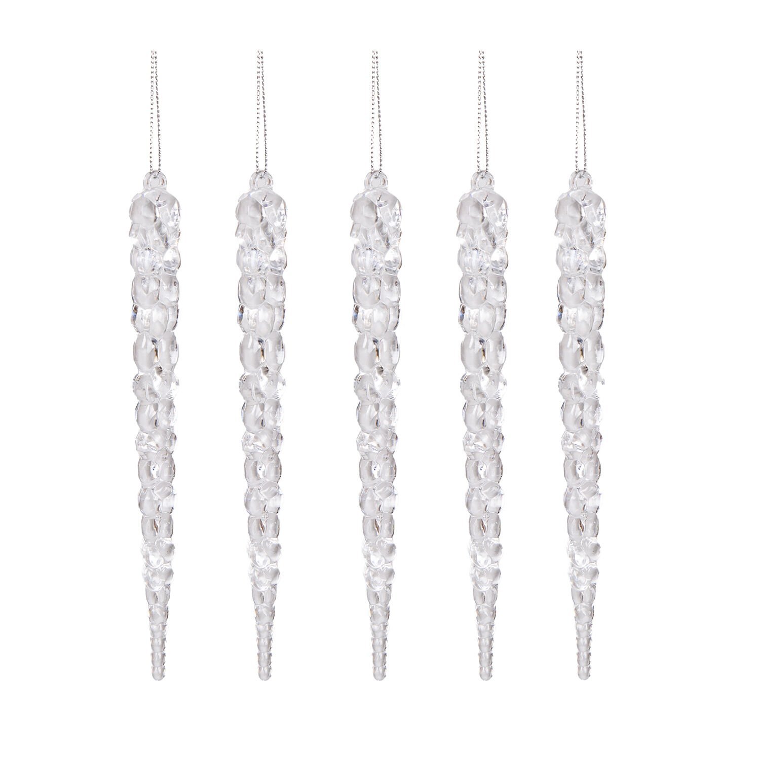 Yılbaşı Süsü, Buz Sarkıt, Şeffaf - Asmalı, 5'lİ Paket, 2x17 cm
