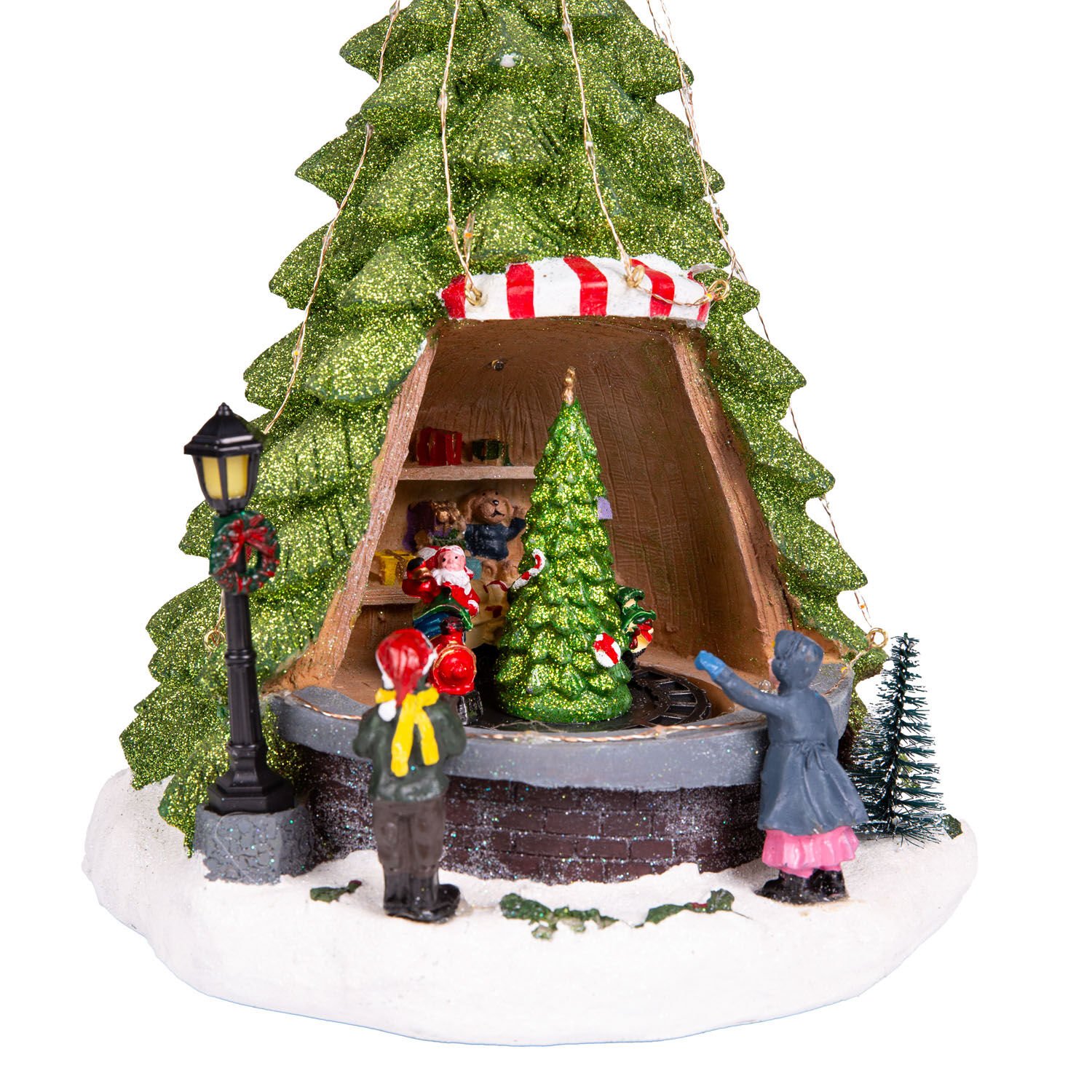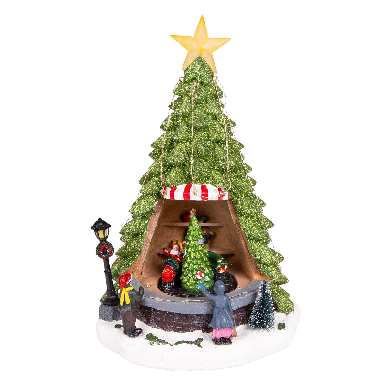 Yılbaşı Süsü, Dekor Çam Ağacı, Yeşil-Beyaz - Hareketli, Müzikli, Işıklı, 32 cm