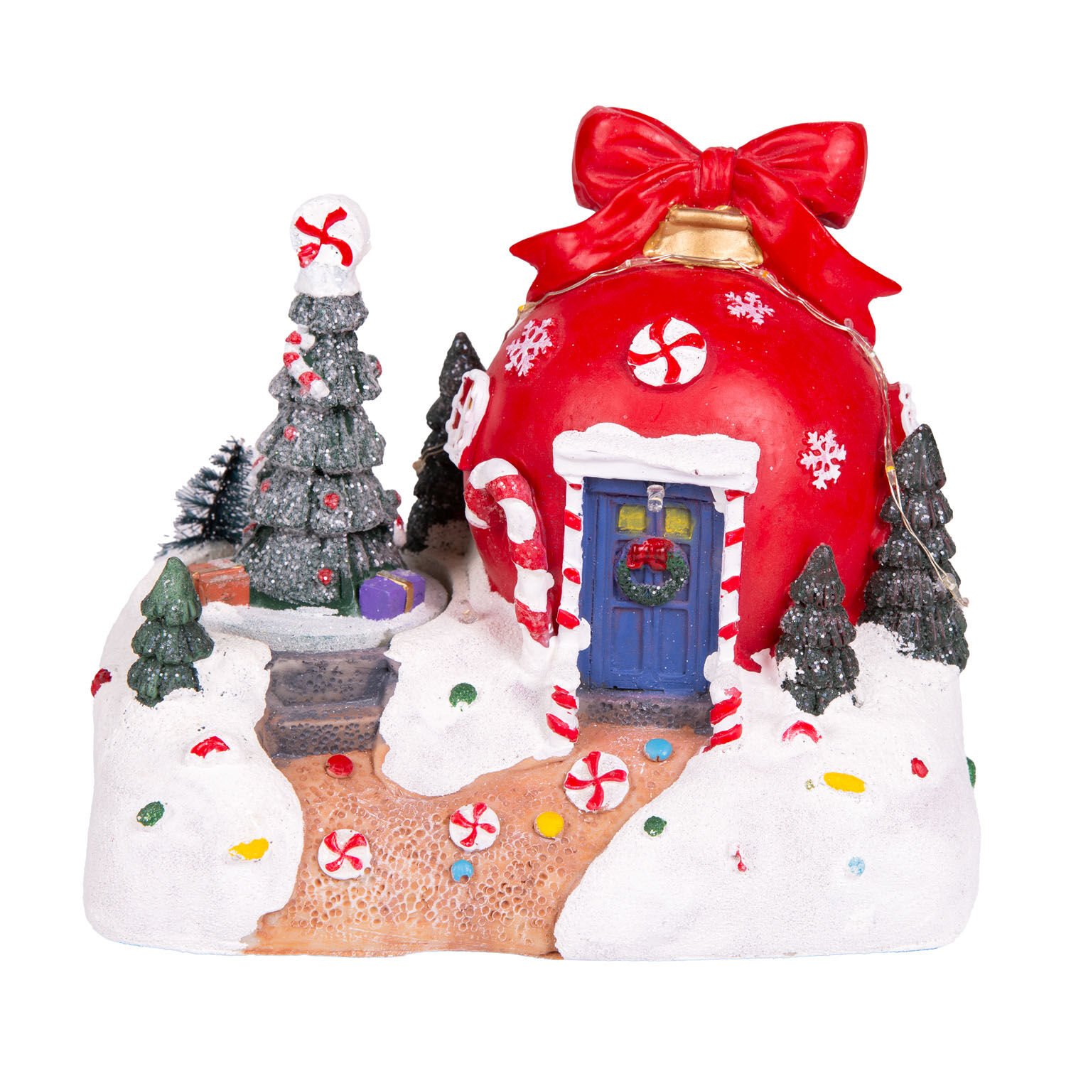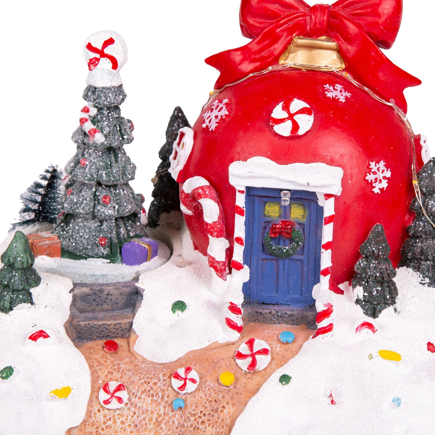 Yılbaşı Süsü, Dekor Köy Evi Figürlü, Hareketli, Müzikli, Işıklı, Kırmızı-Beyaz - 17x18 cm
