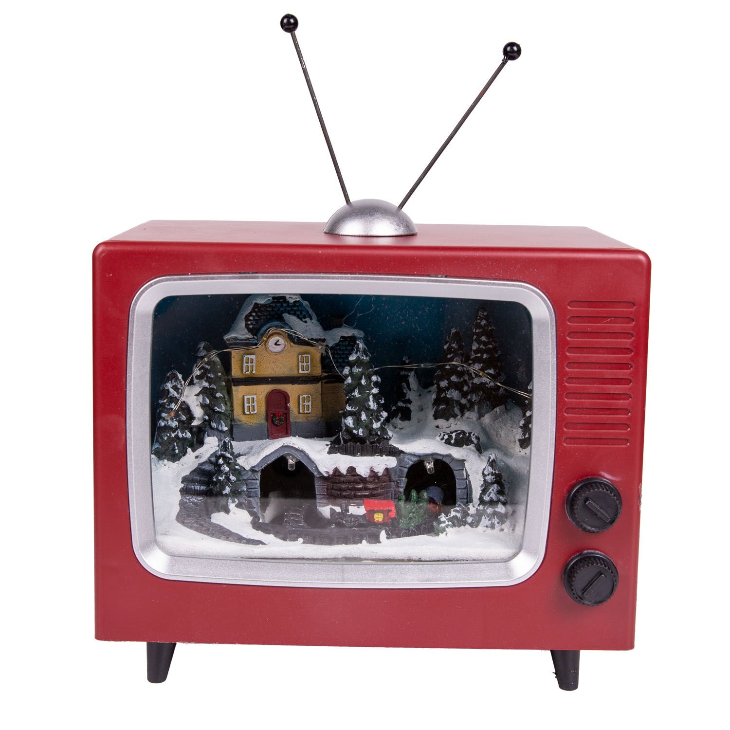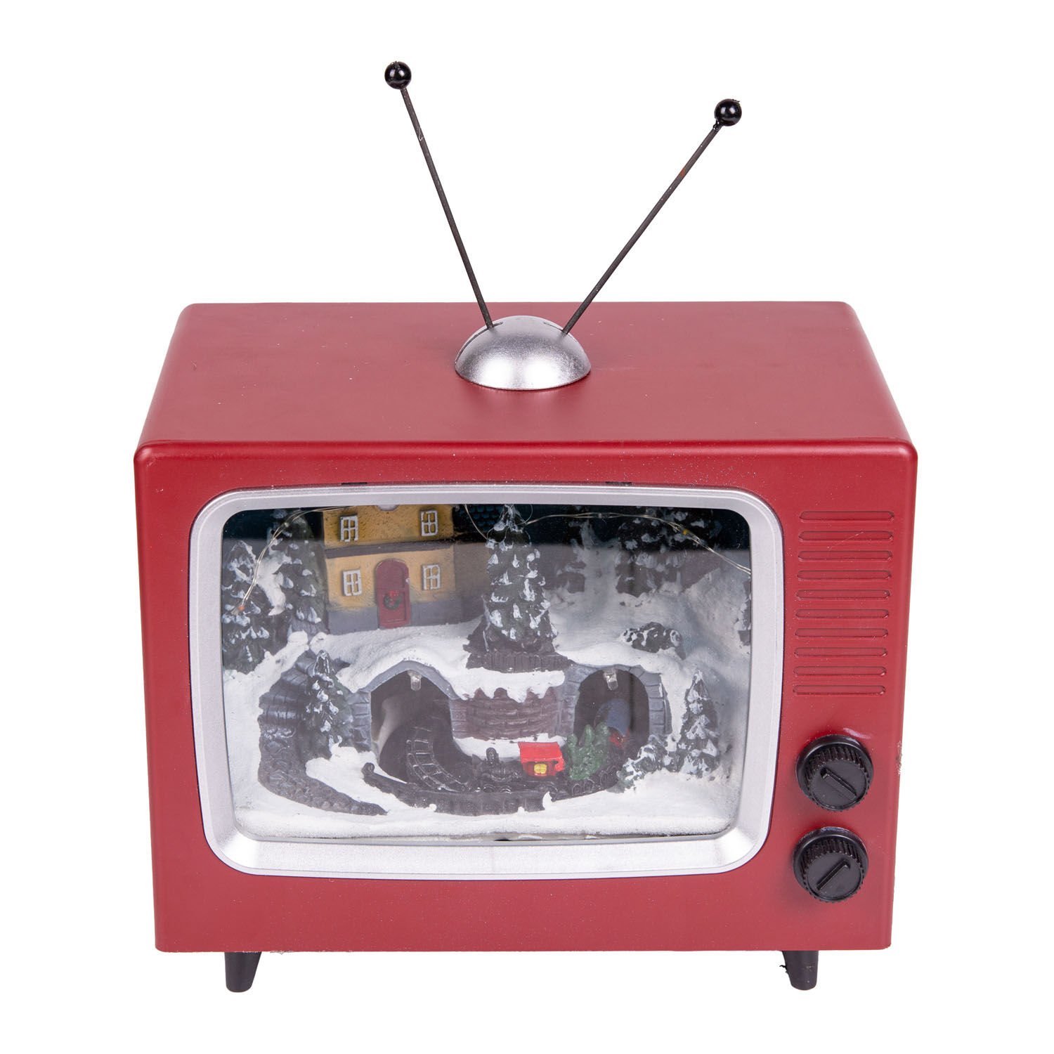 Yılbaşı Süsü, Dekor Televizyon, Kahverengi-Beyaz - Hareketli, Müzikli, Işıklı, 20x18 cm