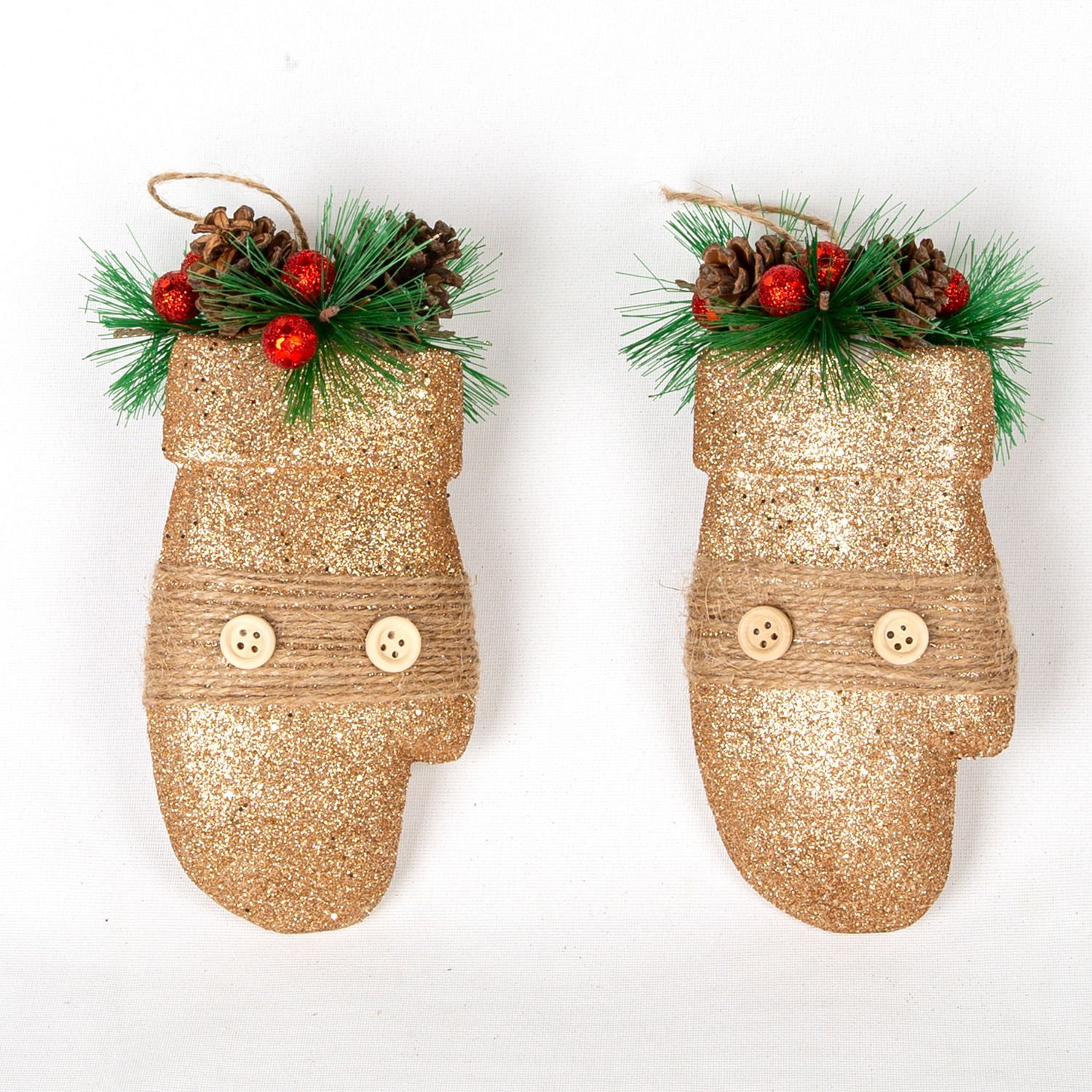 Yılbaşı Süsü Eldiven Seti (Berry'li, Dore, 12x18,5 cm, 2'li): Ağacınızda Dore Rengin Şıklığı ve Kış Sıcaklığı
