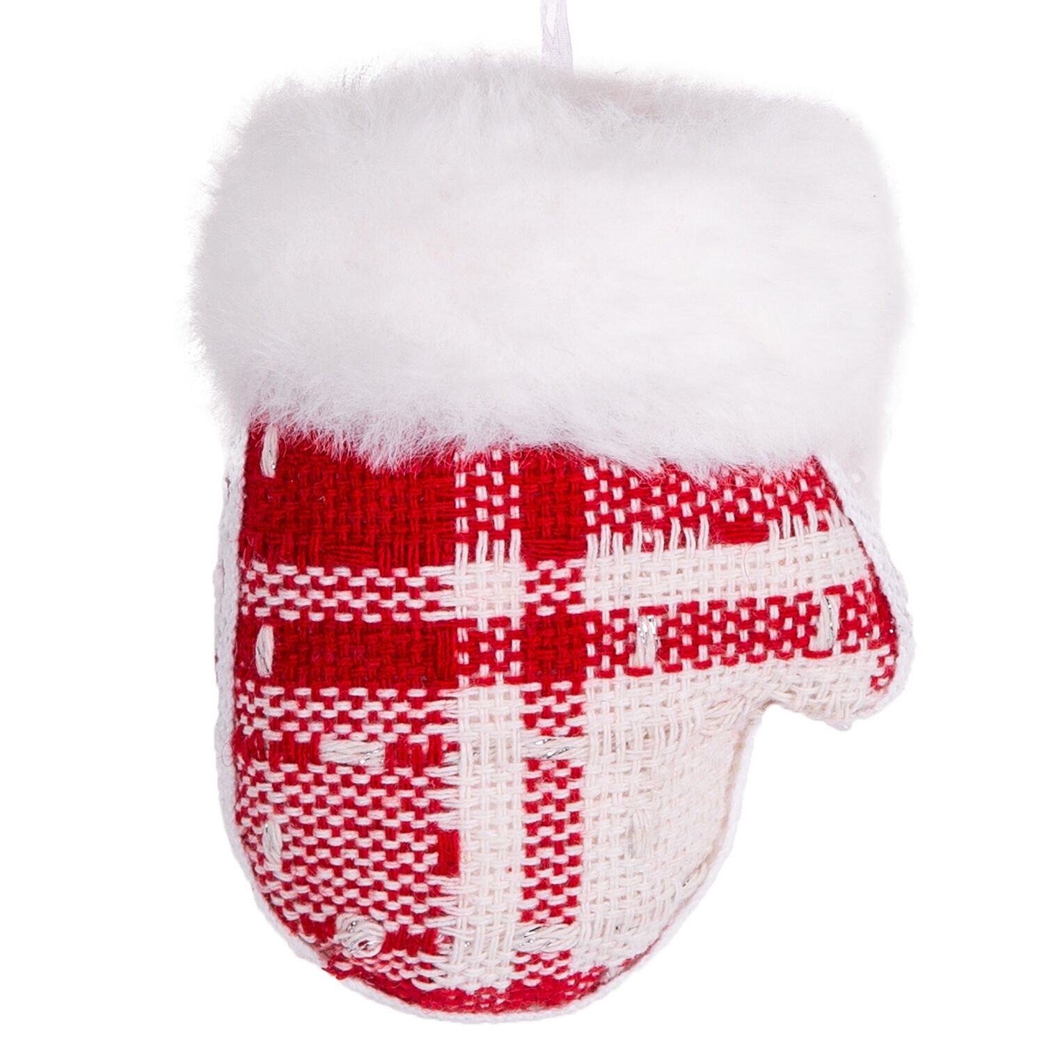 Yılbaşı Süsü, Eldiven, Ekose Desenli, Kırmızı - 10x8 cm