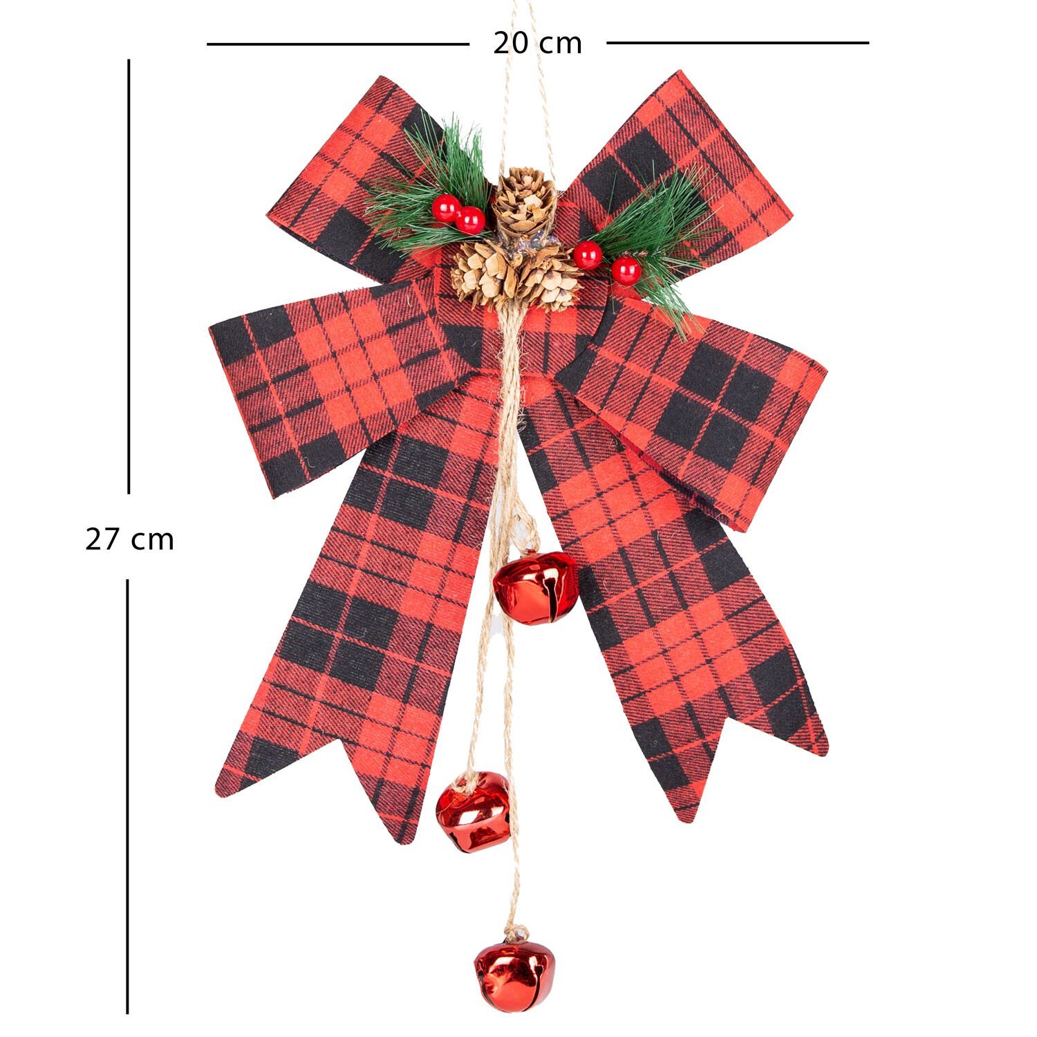 Yılbaşı Fiyonk Süsü (20x27 cm, Kırmızı-Siyah Ekose): Kapı ve Çelenk Süslemelerinde Klasik ve Şık Bir Dokunuş