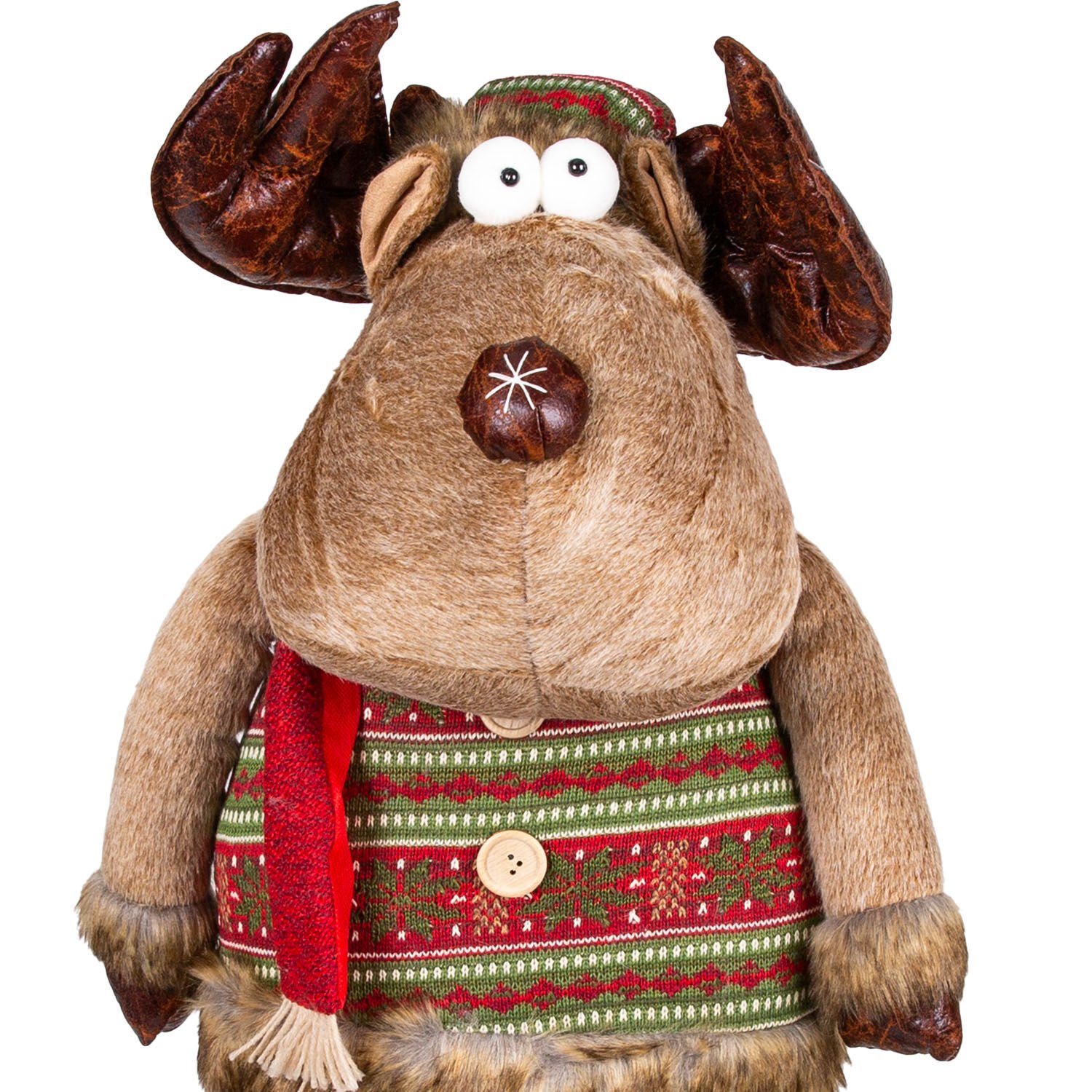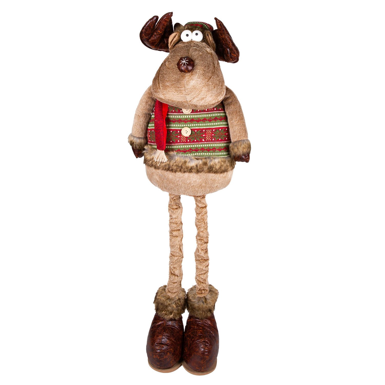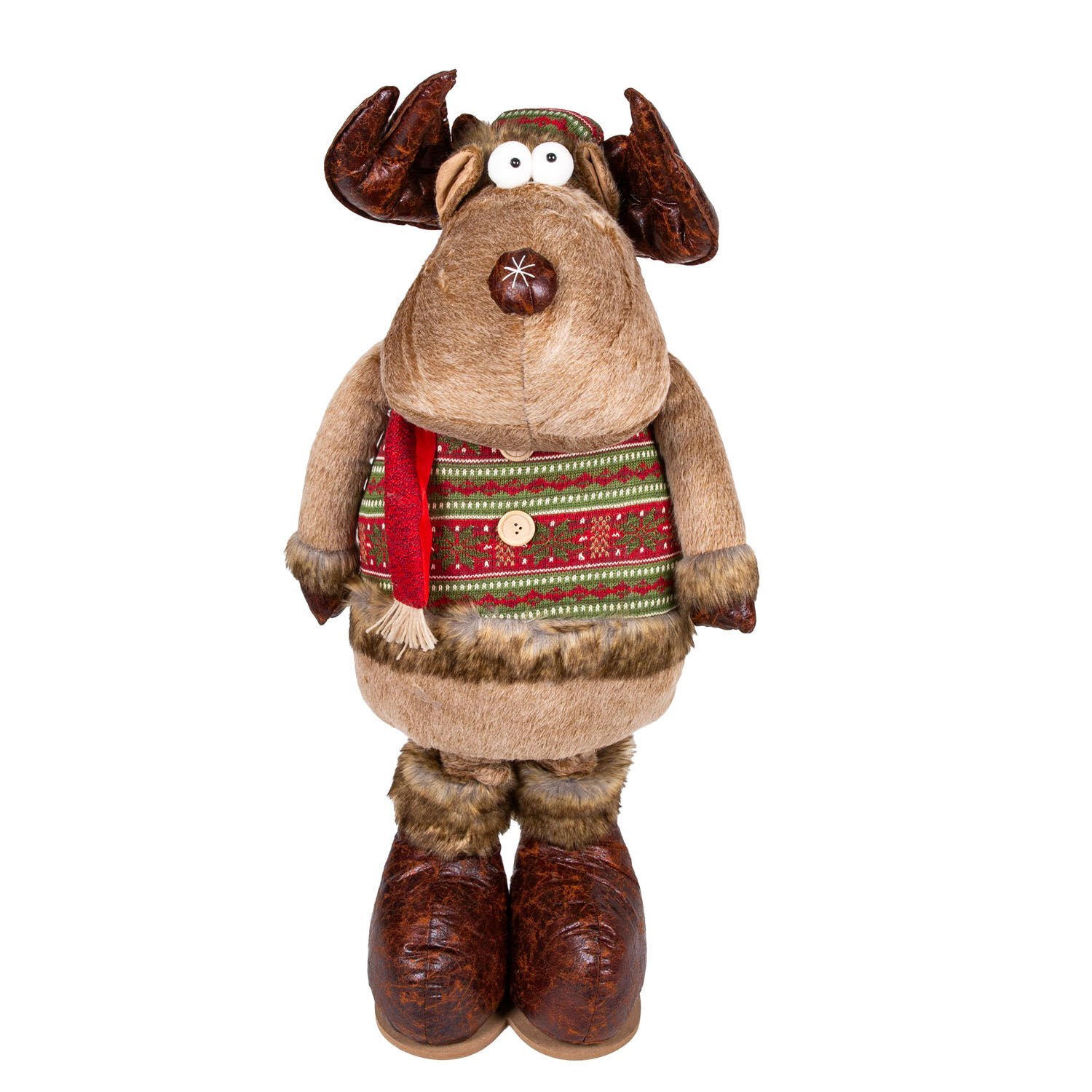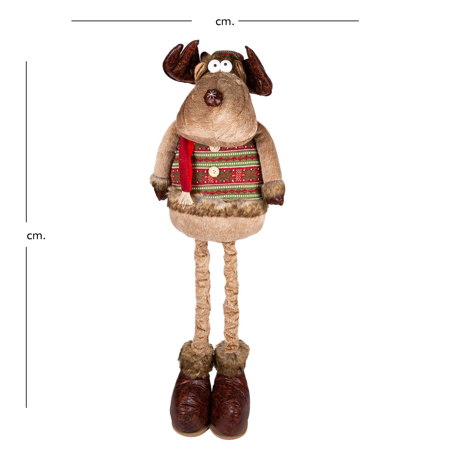 Yılbaşı Süsü, Geyik Adam, Kahverengi - Kırmızı atkılı, Uzayan Ayaklı, 36x80-130 cm