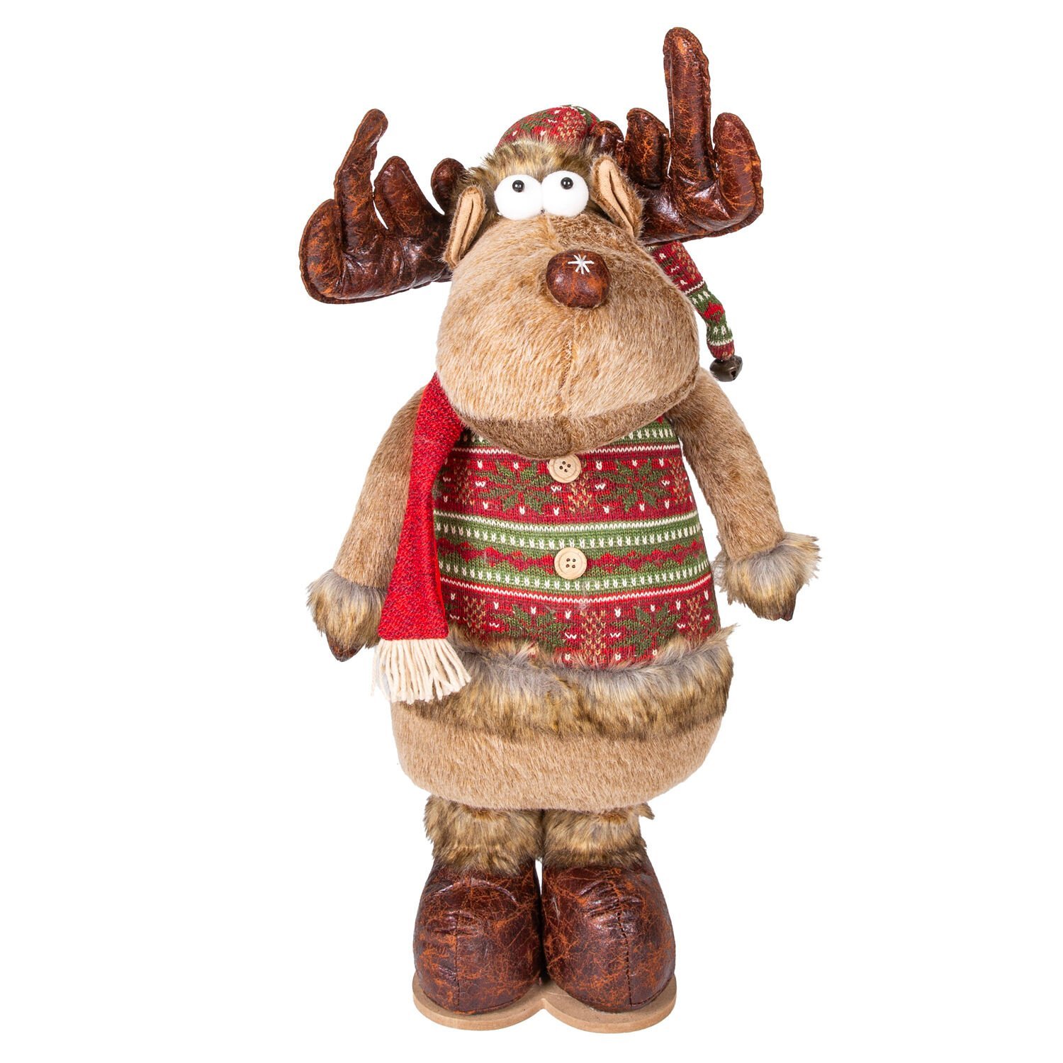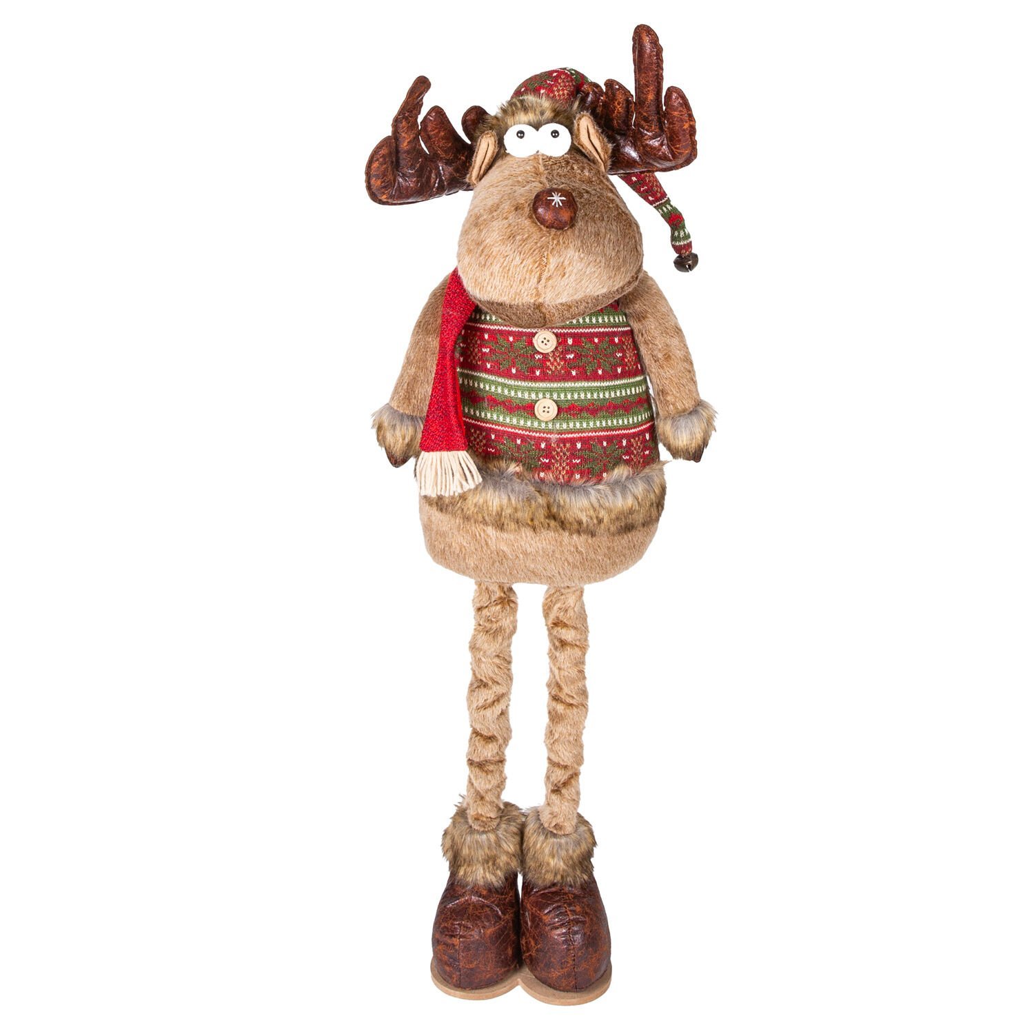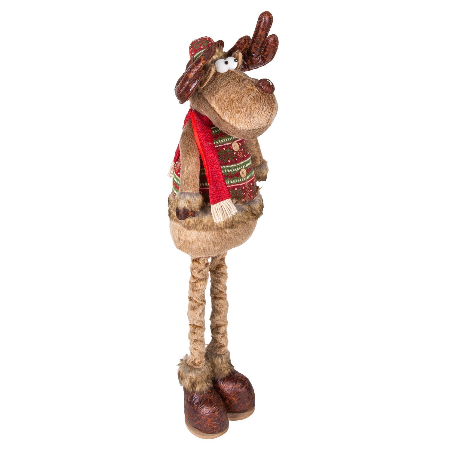 Yılbaşı Süsü, Geyik Adam, Kahverengi - Uzayan Ayaklı, Kırmızı Atkılı, 30x60-100 cm