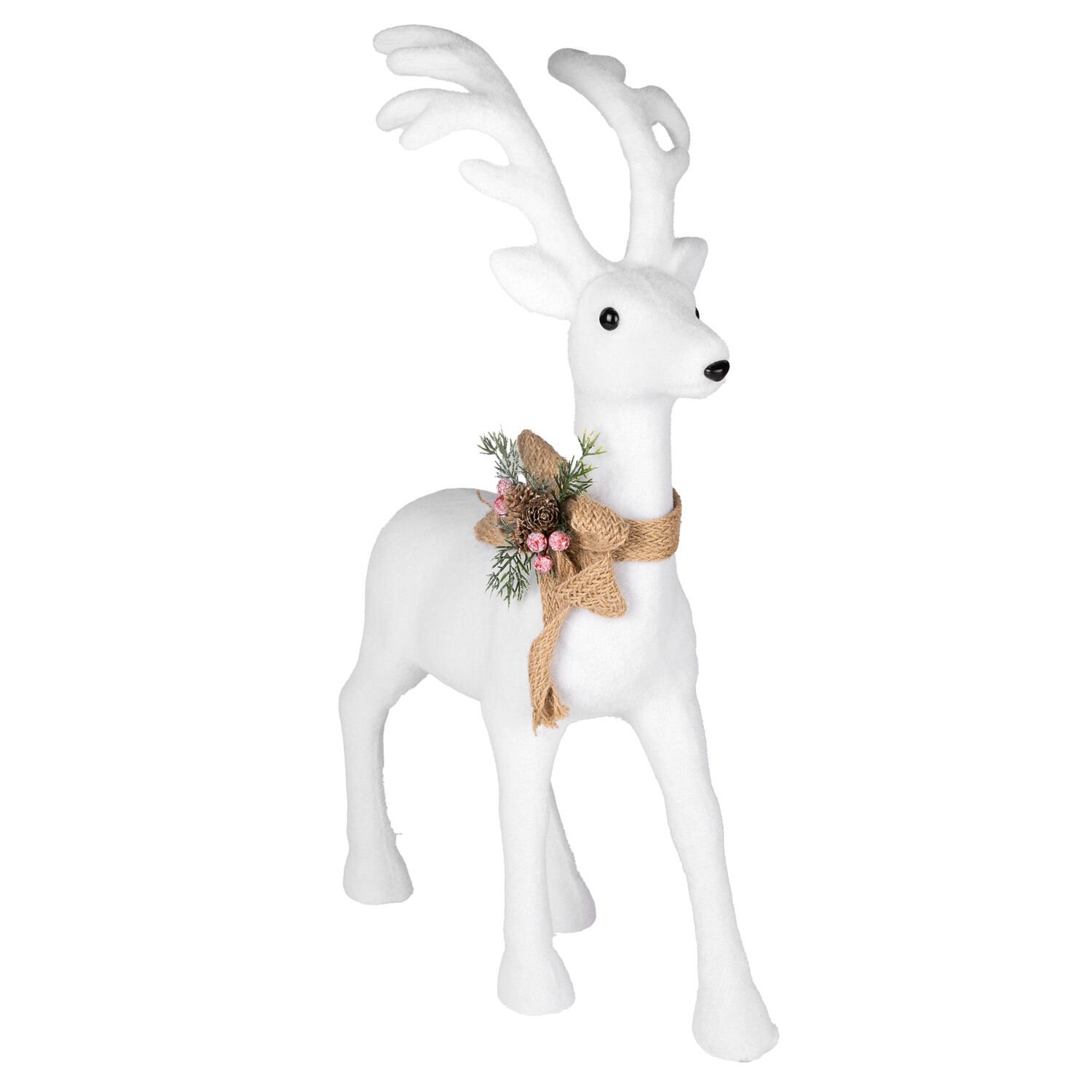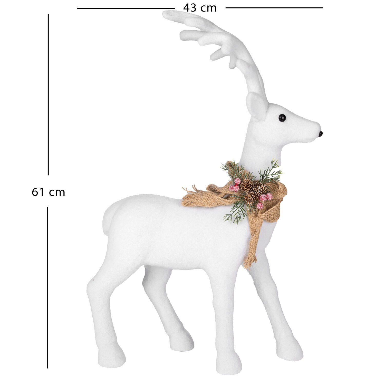 Yılbaşı Geyik Figürü (61 cm, Beyaz): Bembeyaz Duruşuyla Salonunuzda Kar Temalı ve Heybetli Bir Etki