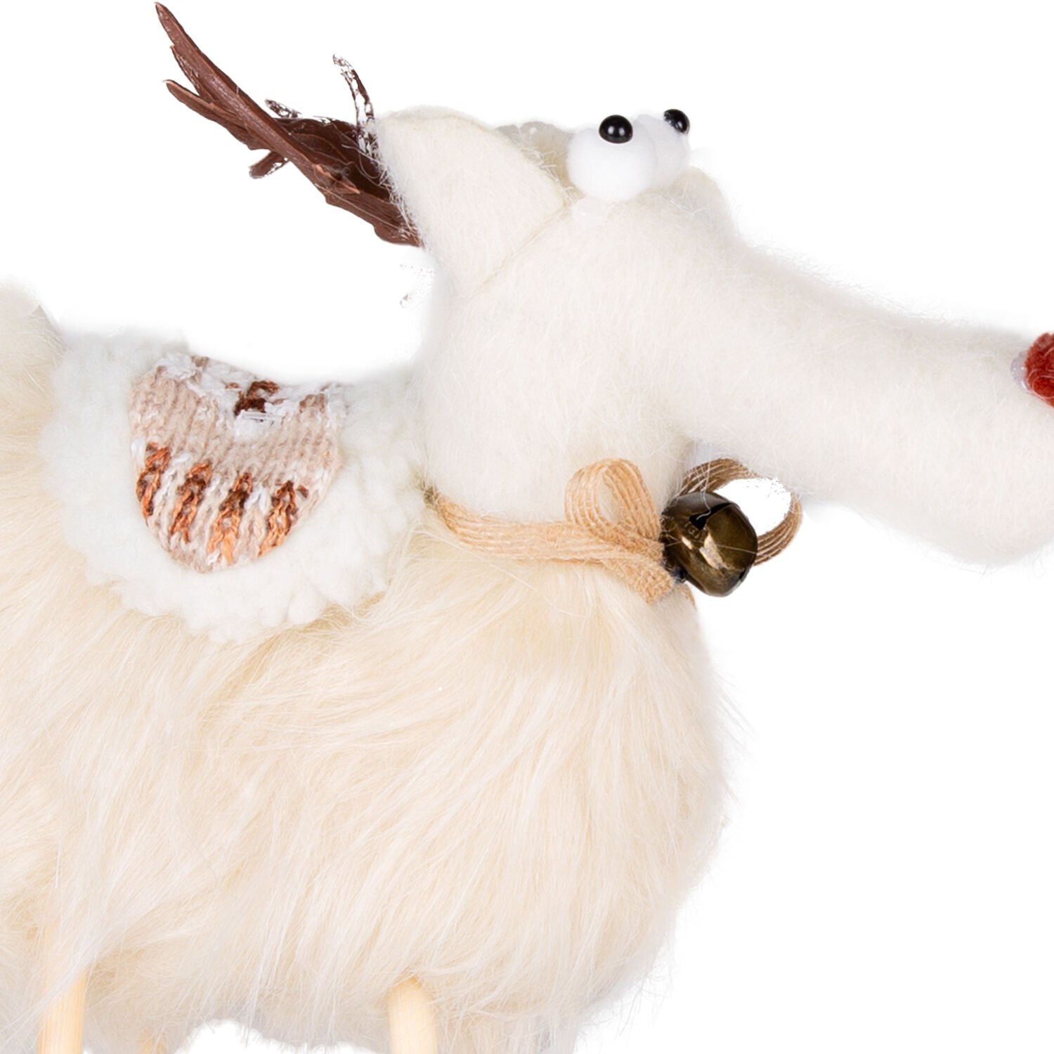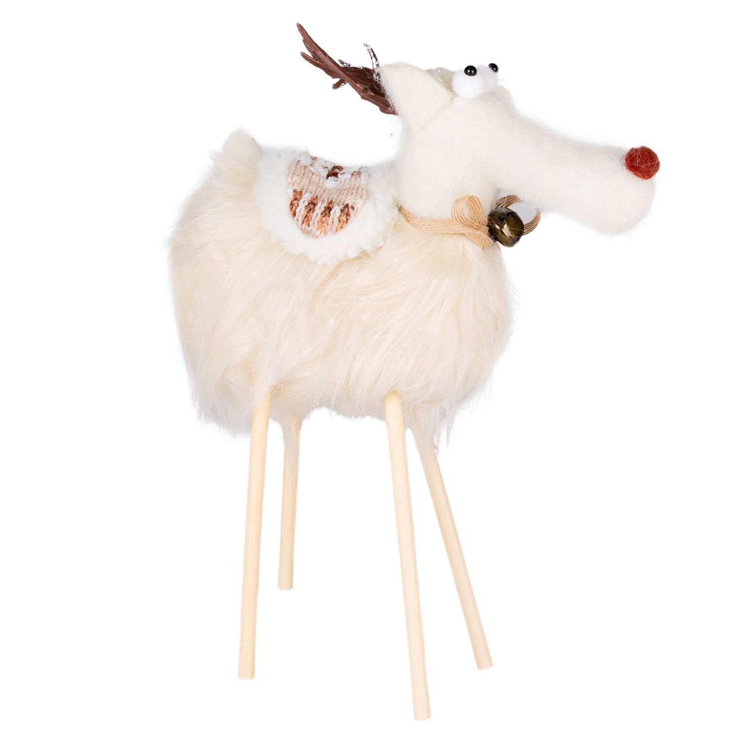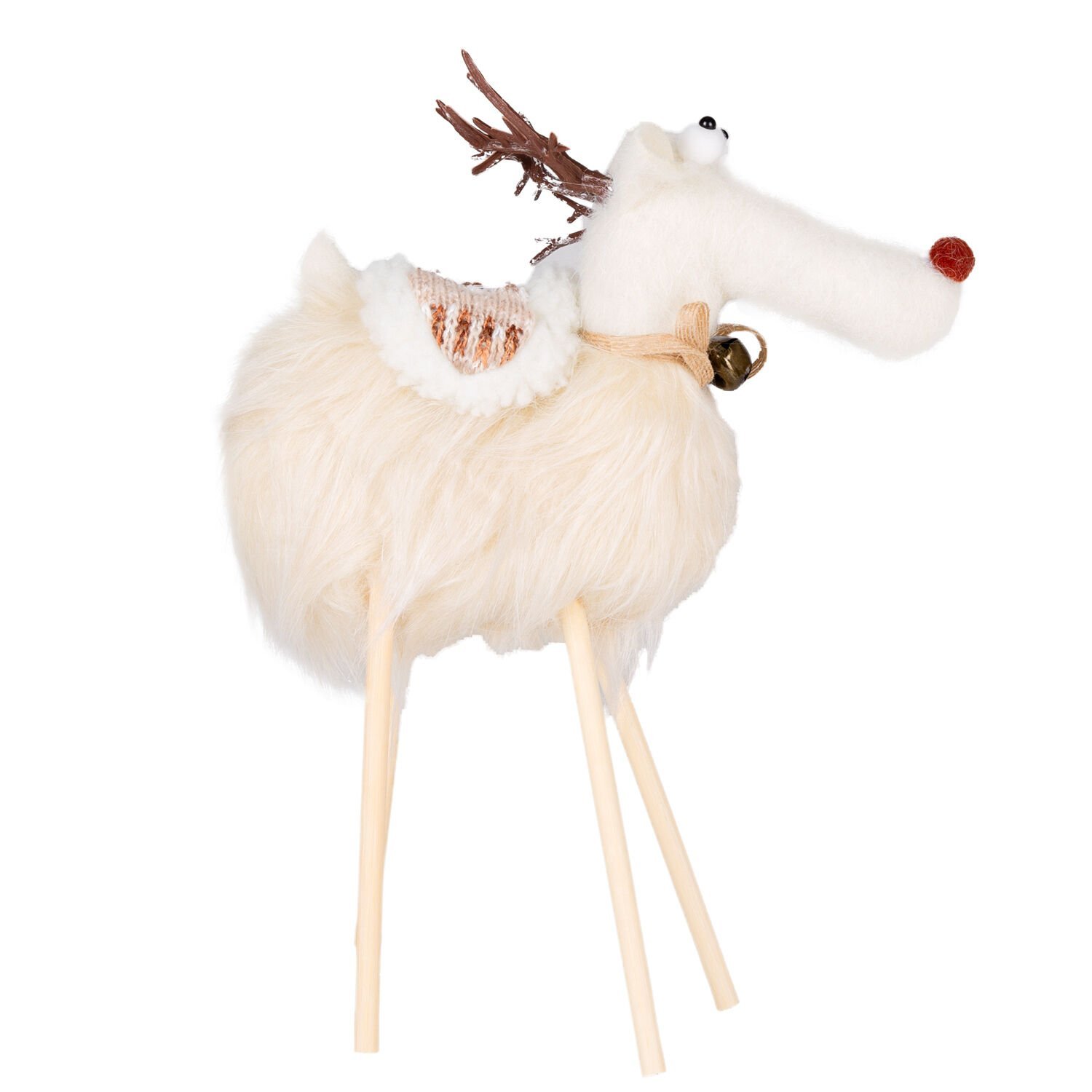 Yılbaşı Geyik Figürü (35 cm, Beyaz): Bembeyaz Duruşu ve Ahşap Bacaklar ile Minimal ve Şık Bir Görünüm