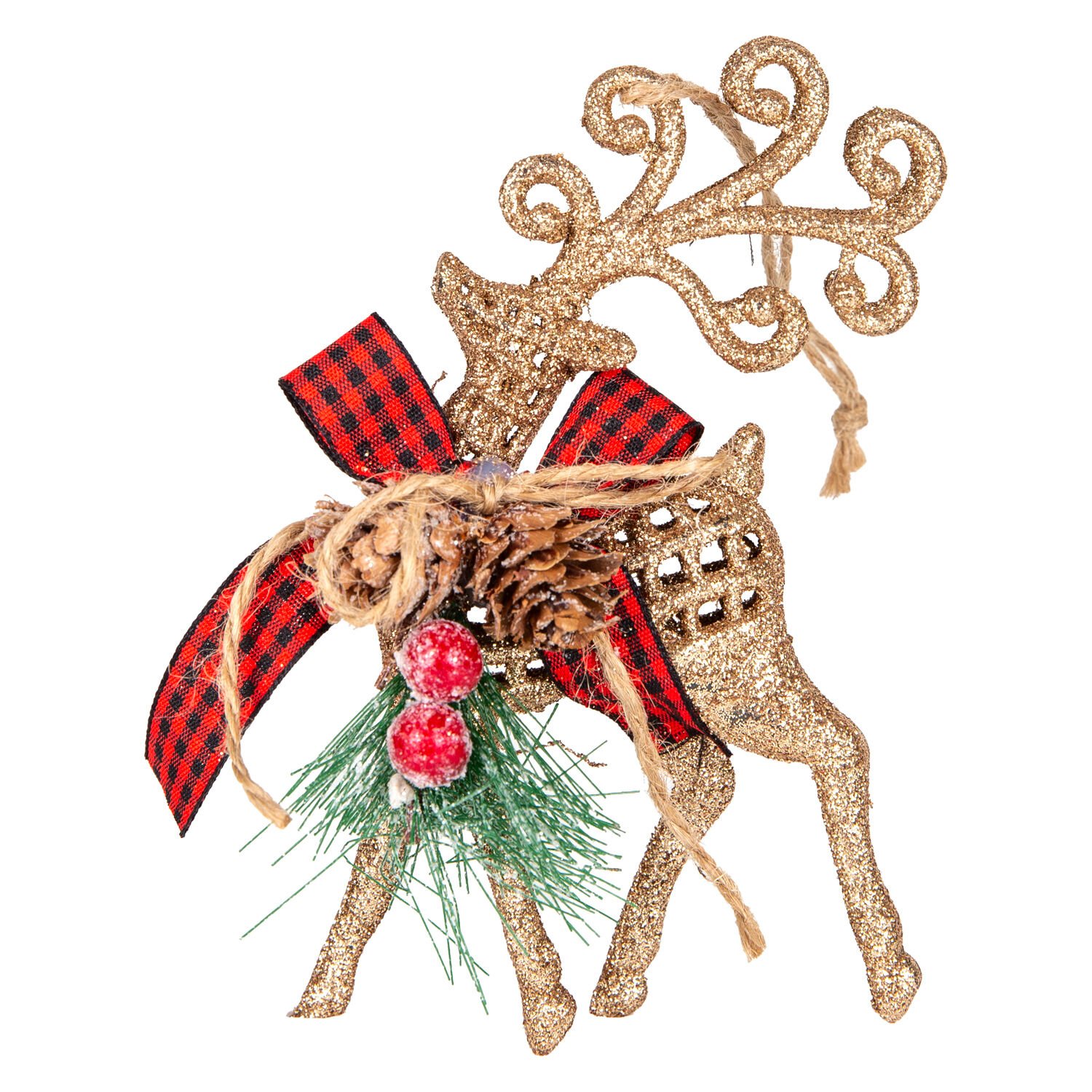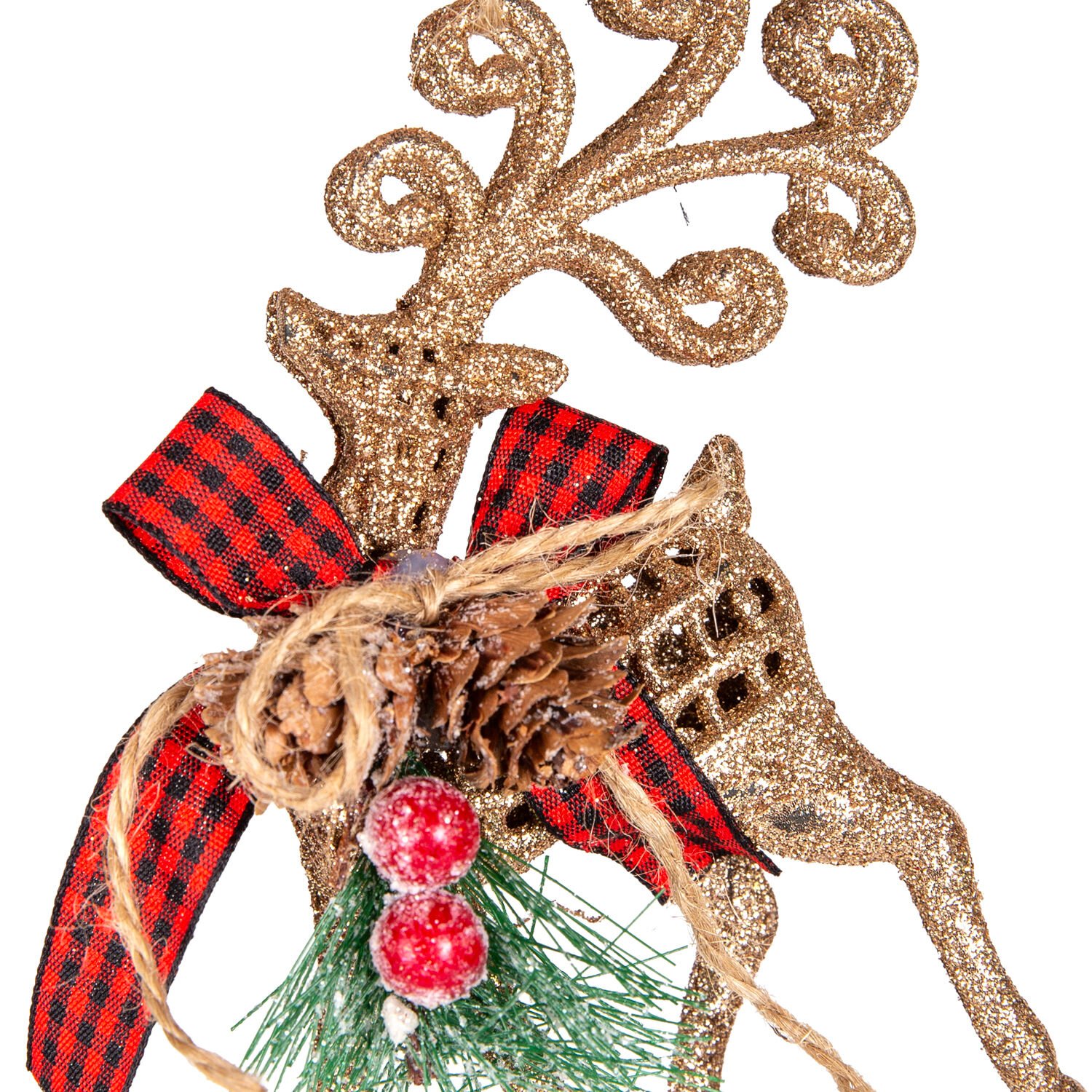 Yılbaşı Süsü, Gold Geyik Figürü: Ekoseli Kurdele ve Simli Işıltıyla Zarif Bir Dokunuş