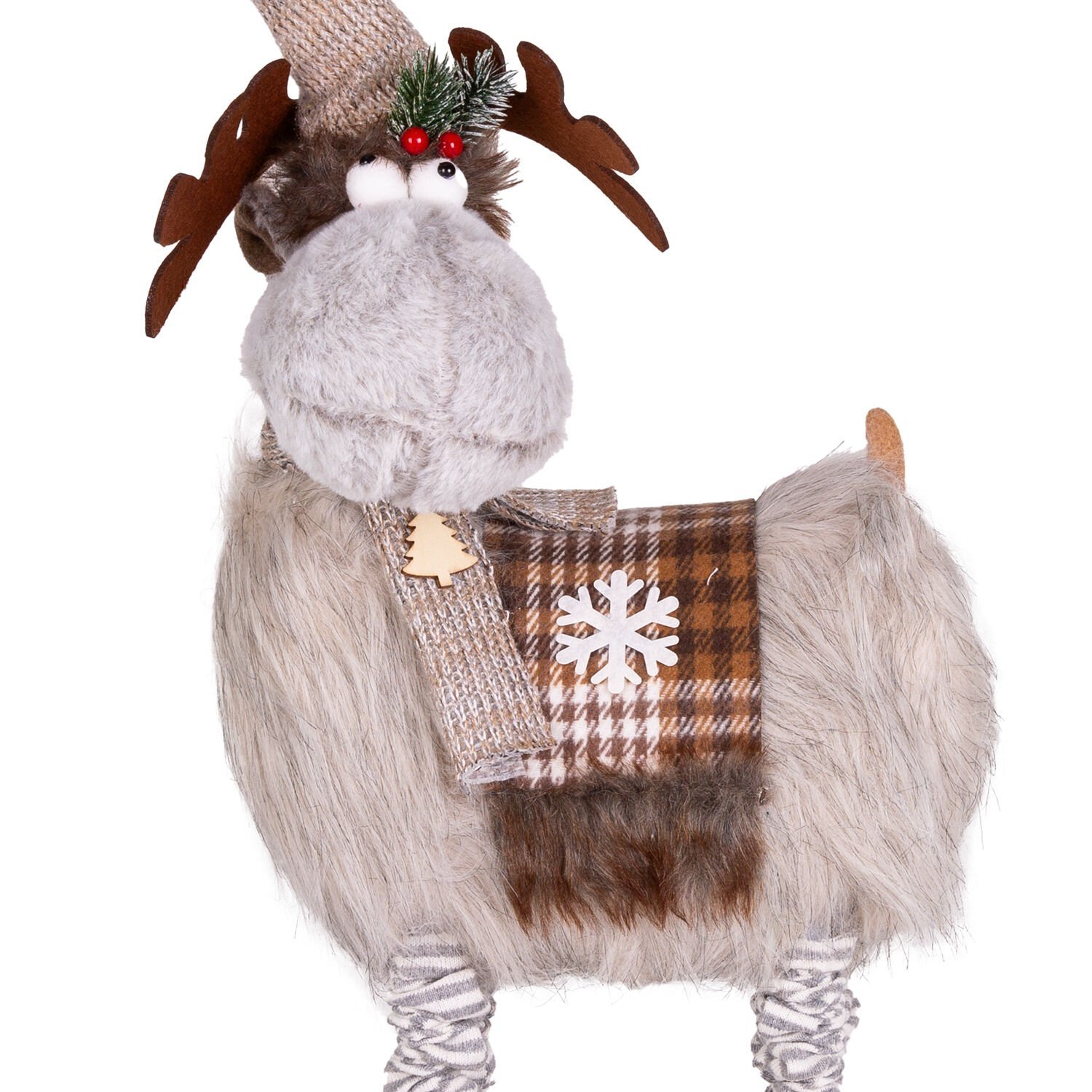 Yılbaşı Süsü, Geyik Figürü, Teleskop Uzayan Bacaklı, Işıklı, Kahverengi-Gri - 42x15x110 cm