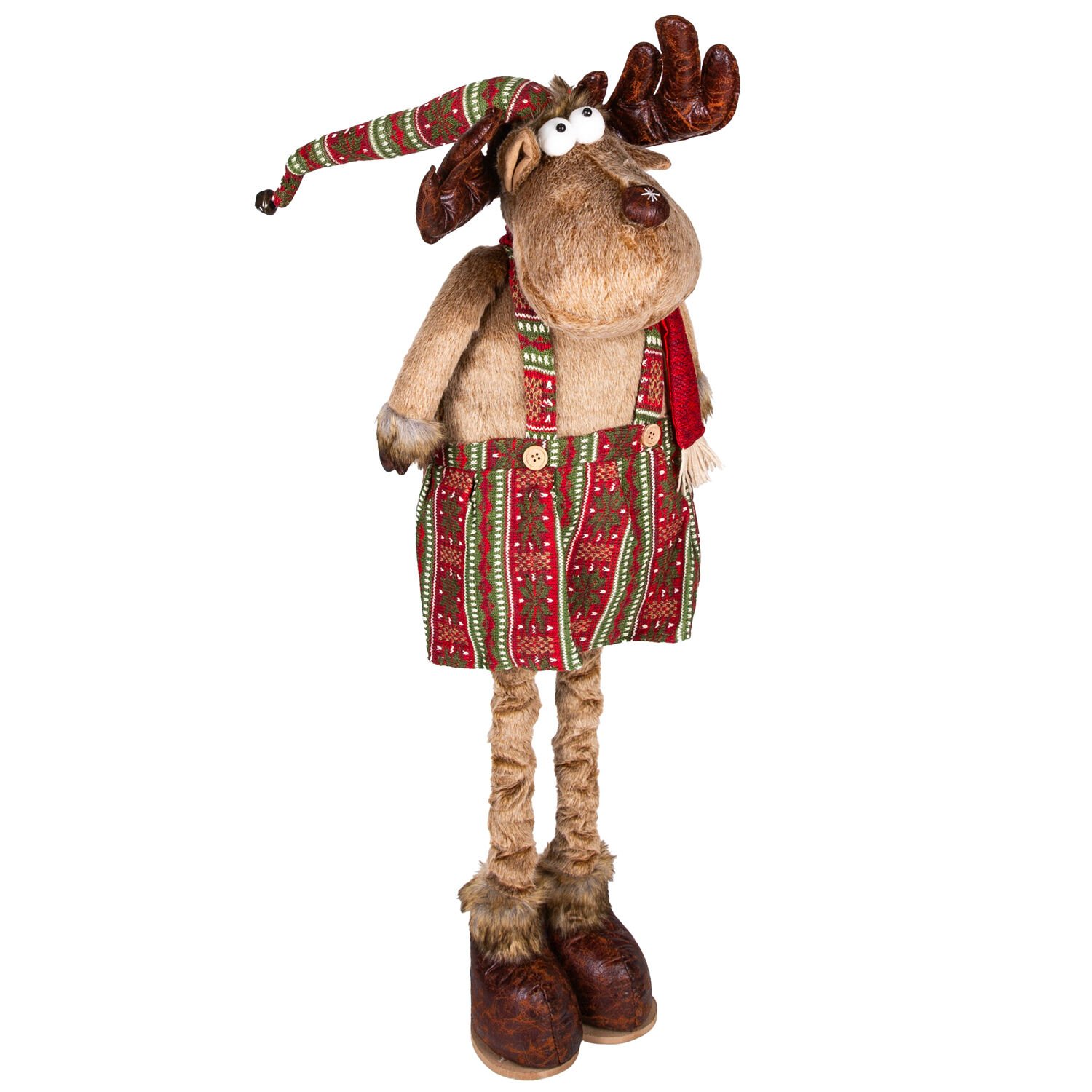 Yılbaşı Süsü, Geyik Kadın, Kahverengi - Uzayan Ayaklı, Deri ayakkabı, boynuzlu, 30x70-100 cm