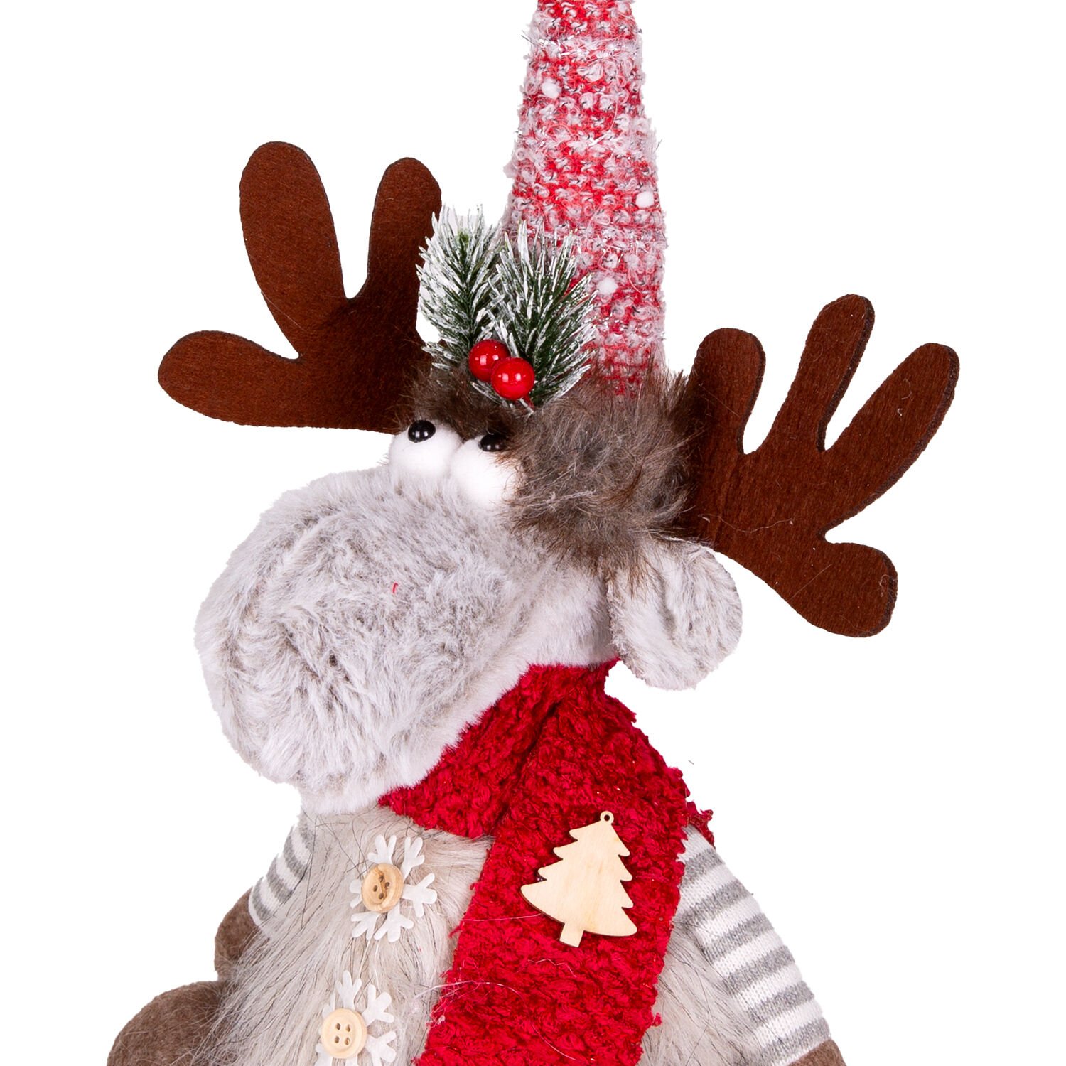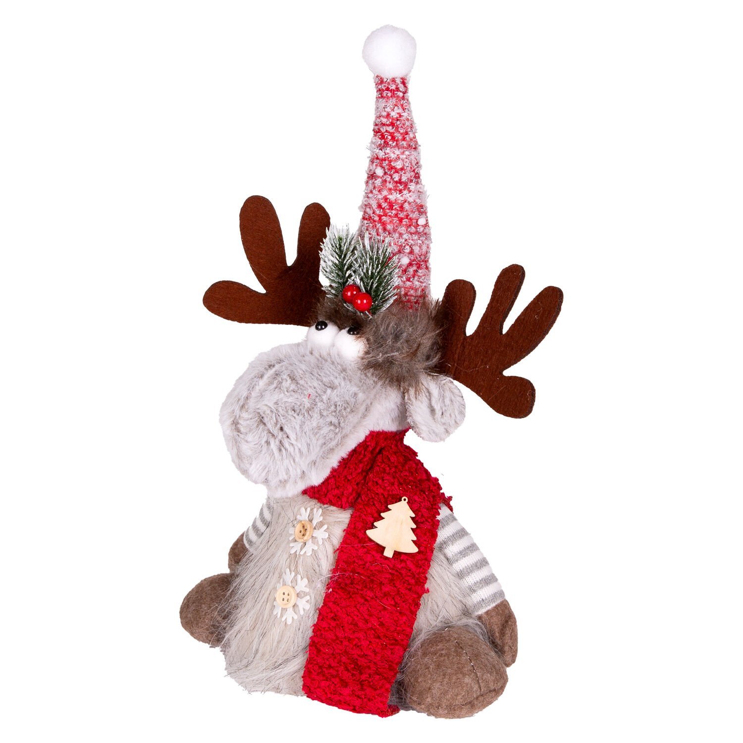 Yılbaşı Süsü, Geyik, Kırmızı-Gri - 17x10x35 cm