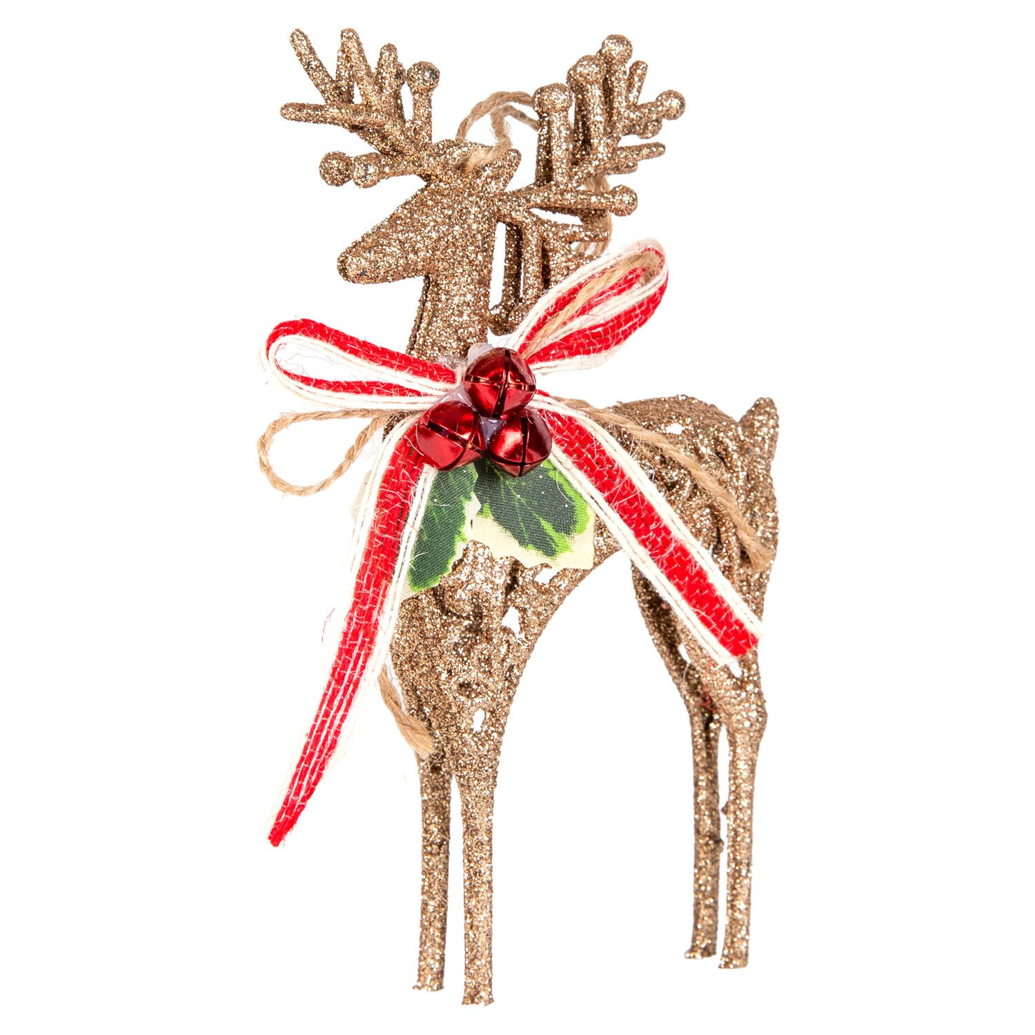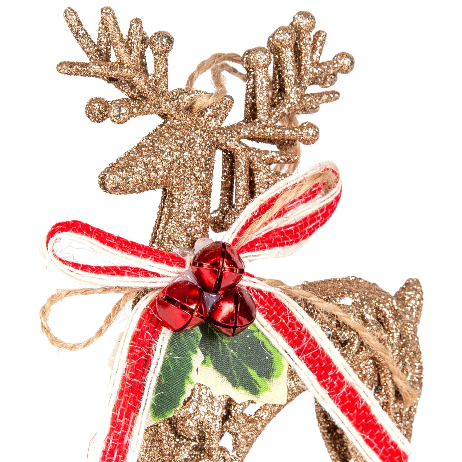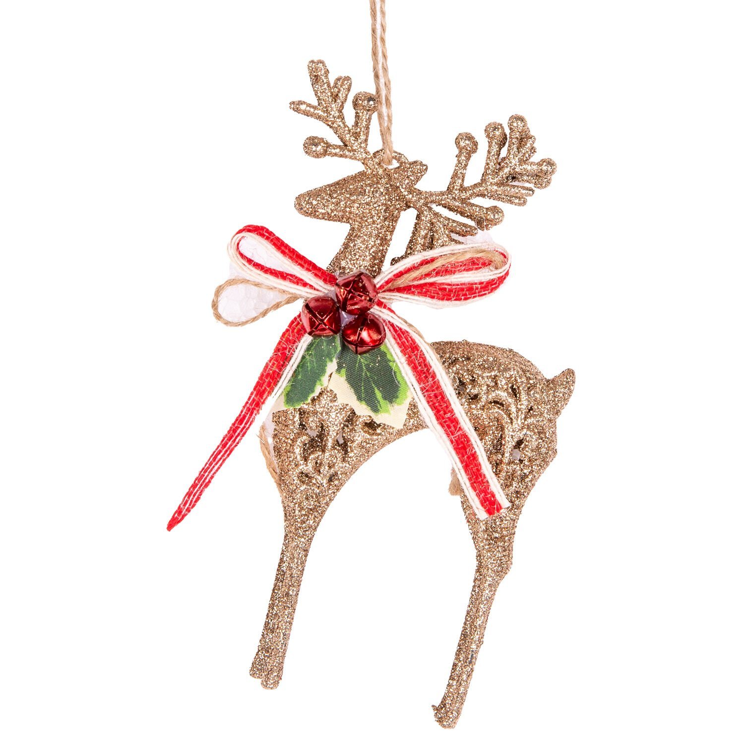 Yılbaşı Süsü, Geyik, Yılbaşı Dekorlu, Simli, Gold - 8x16 cm