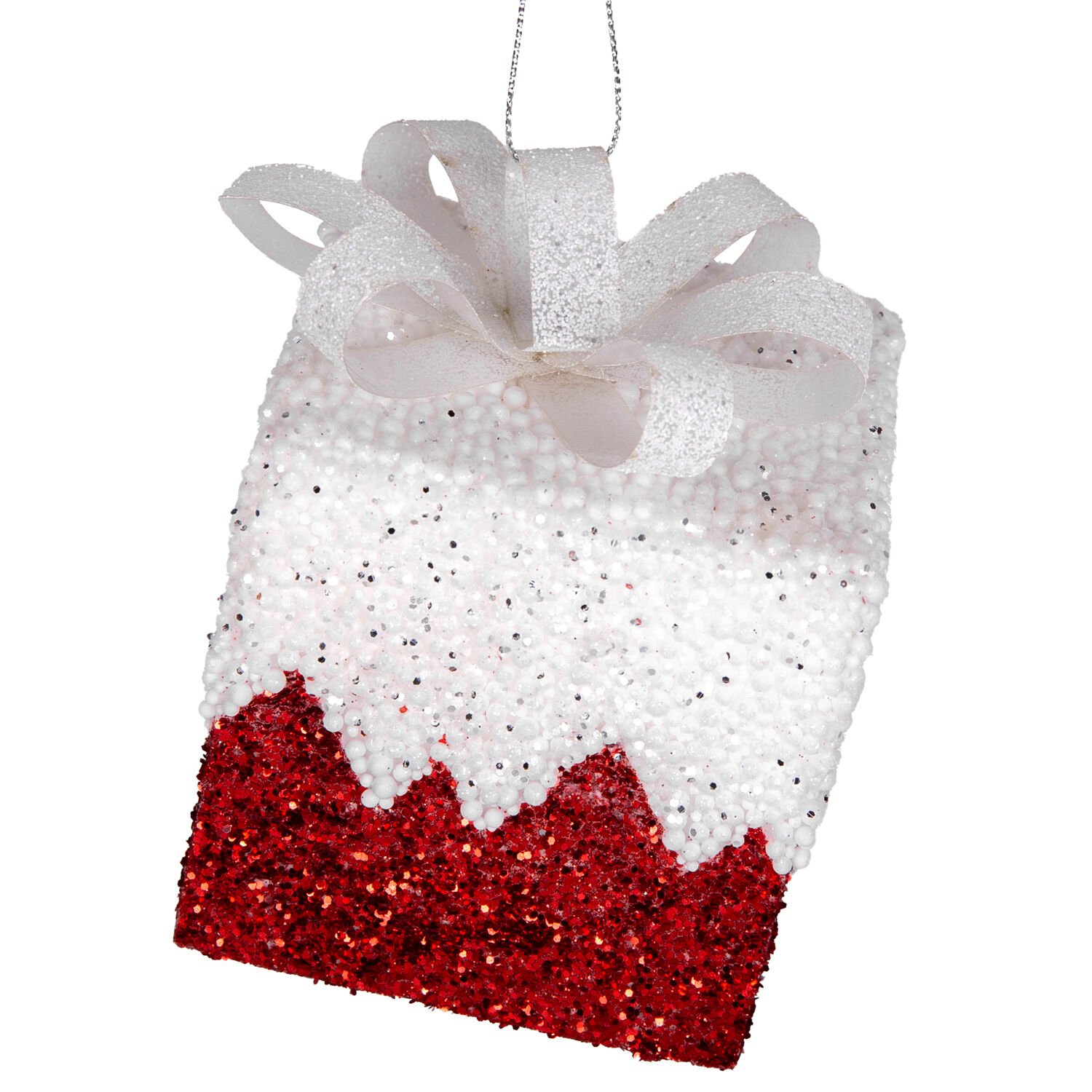 Yılbaşı Süsü, Hediye Paketi, Simli, Kurdelalı, Kırmızı-Beyaz - 2'li Paket, 10 cm