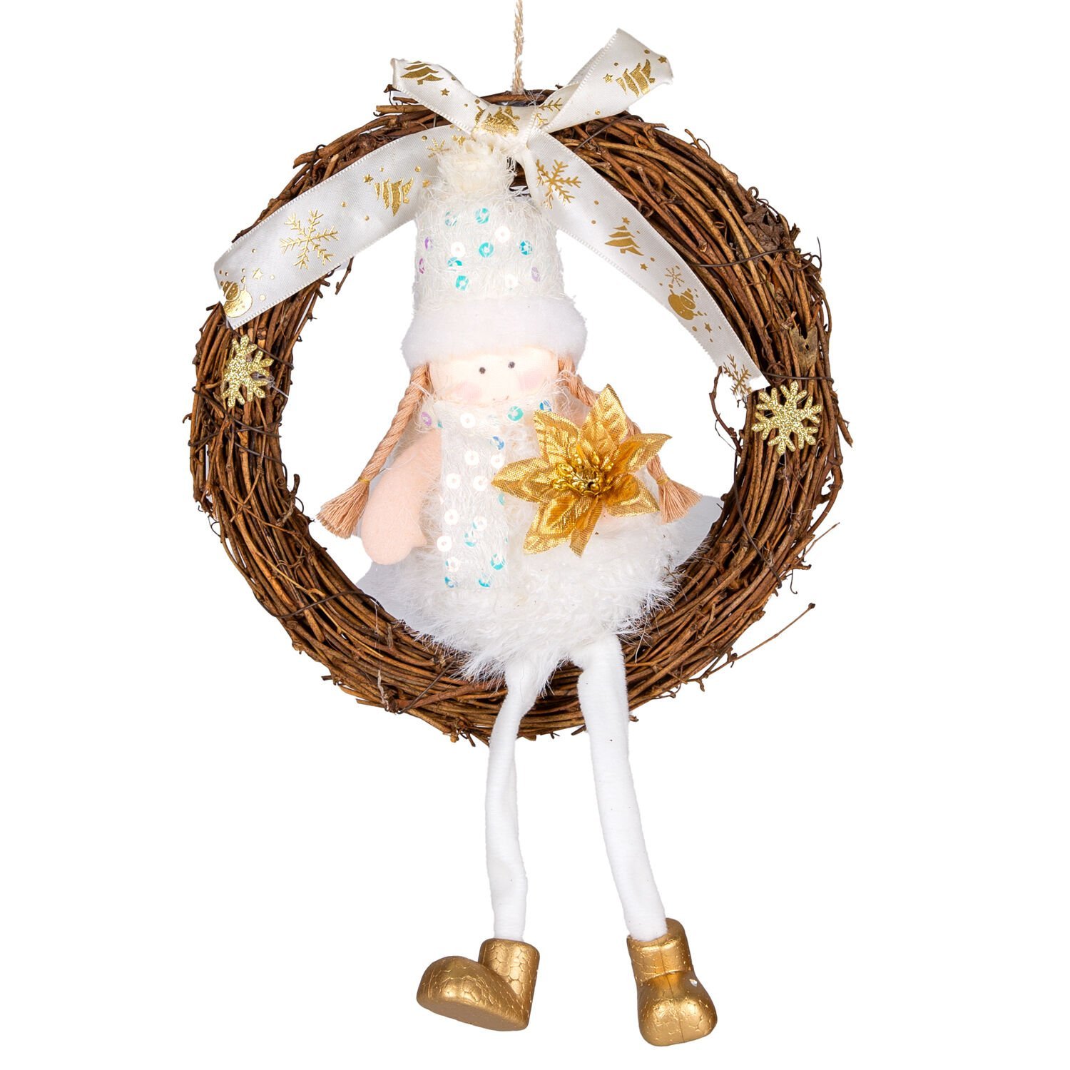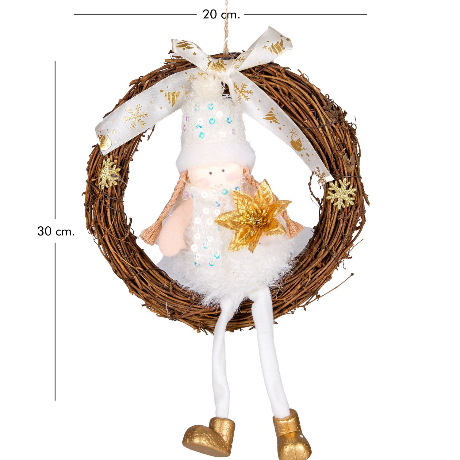 Yılbaşı Süsü, Kapı Çelengi, Gold-Beyaz - Peri Figürlü, 20x30 cm