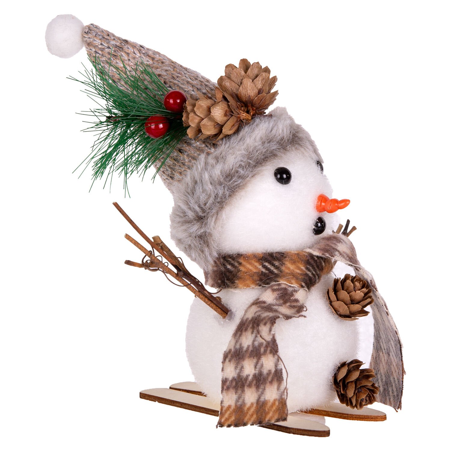 Yılbaşı Süsü, Kardan Adam, Kayak Yapan, Kahverengi-Beyaz - 17x4x17 cm