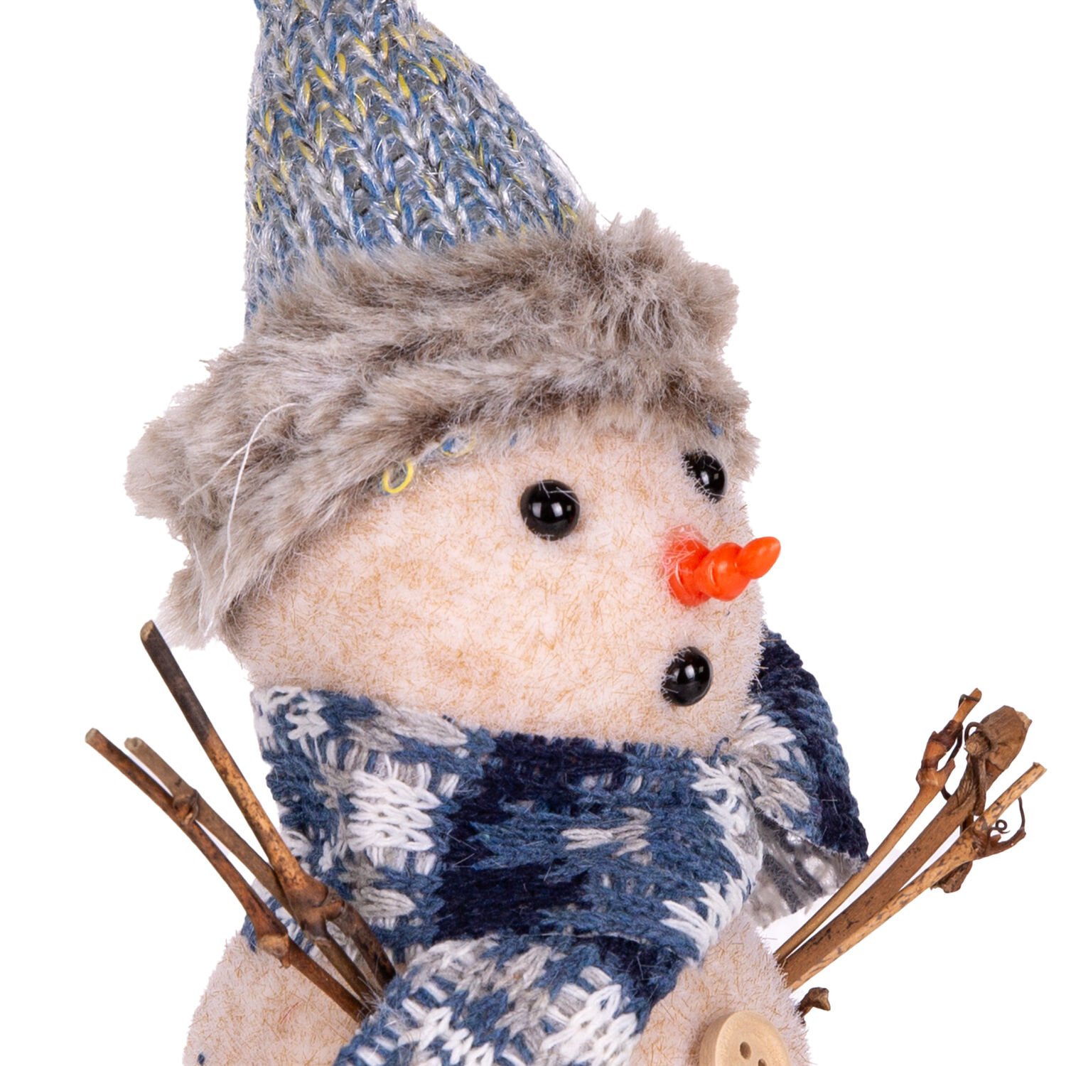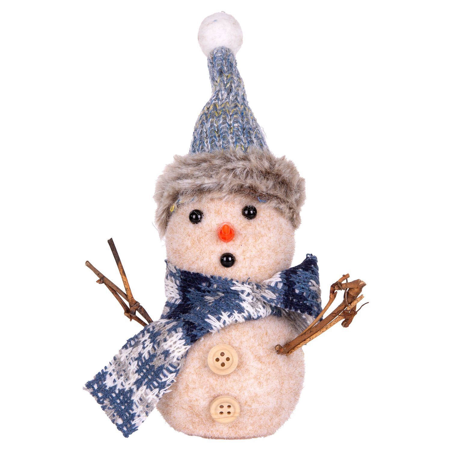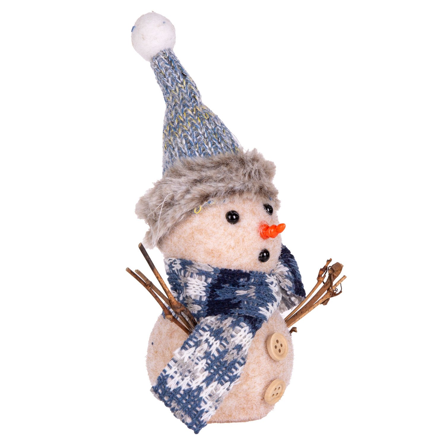 Yılbaşı Süsü, Kardan Adam, Mavi Atkı ve Şapkalı, Bej-Mavi - 12x7x16 cm