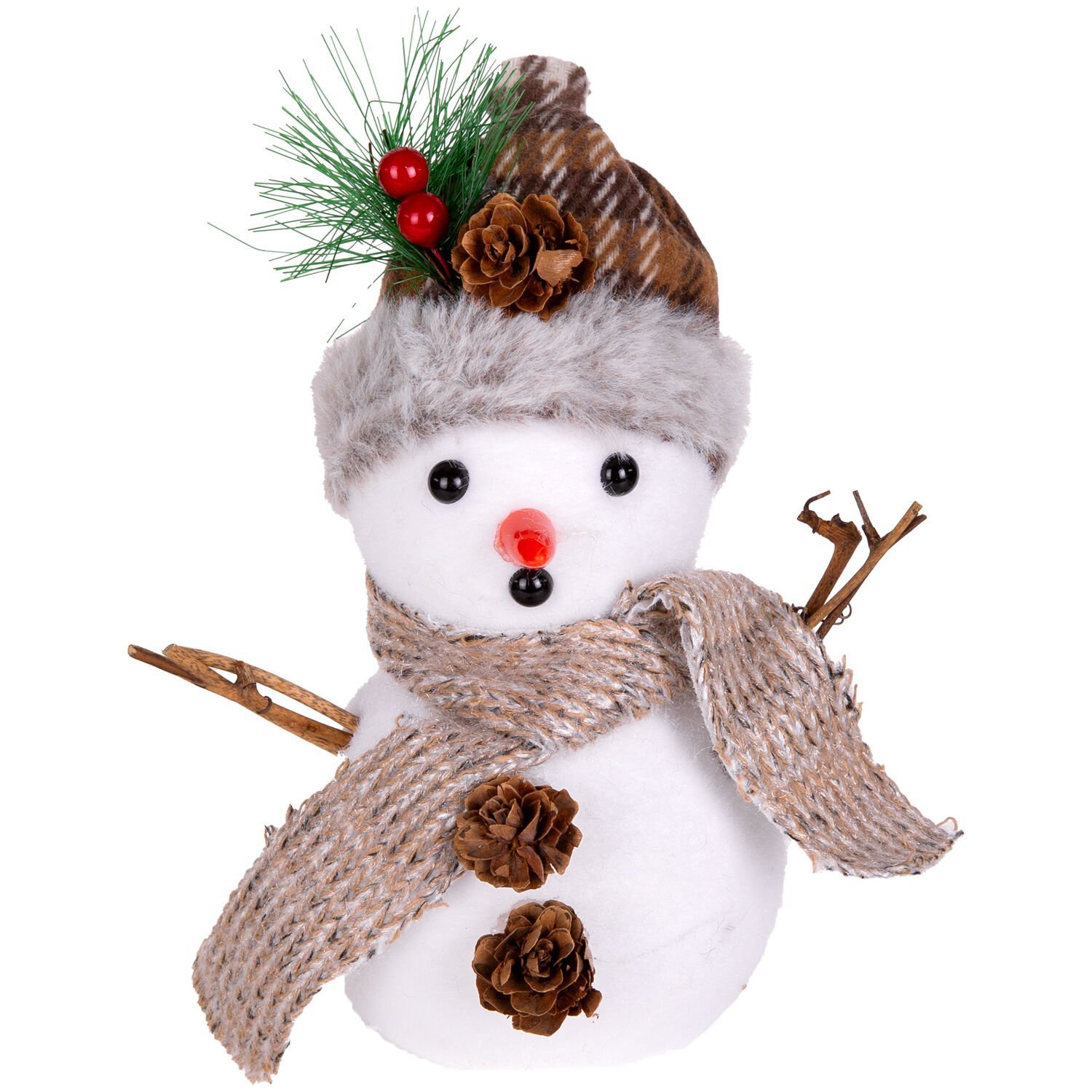 Yılbaşı Süsü, Kardan Adam, Yılbaşı Dekorlu, Ekose Atkılı, Kahverengi-Beyaz - 14x12x18,5 cm
