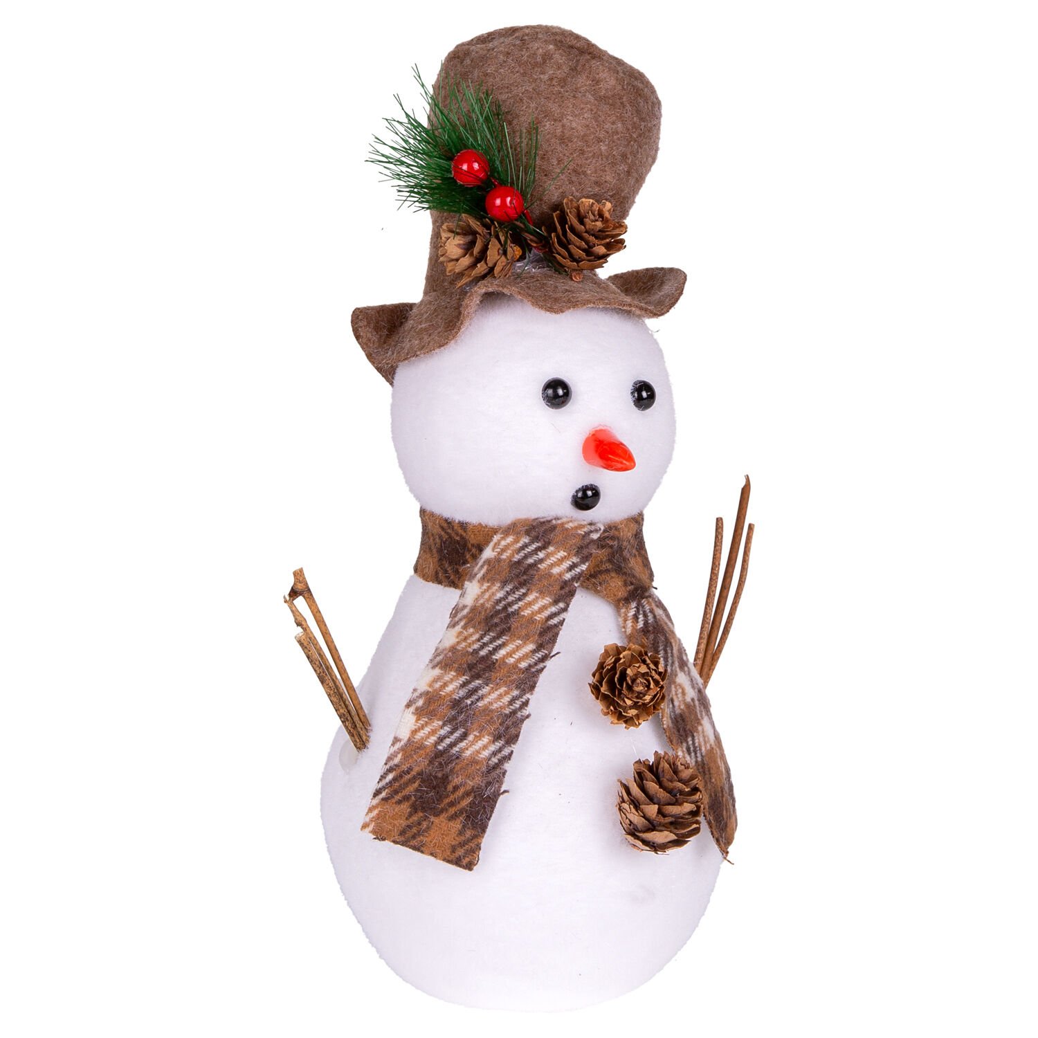 Yılbaşı Süsü, Kardan Adam, Yılbaşı Dekorlu, Ekose Atkılı, Kahverengi-Beyaz - 15x13x26 cm