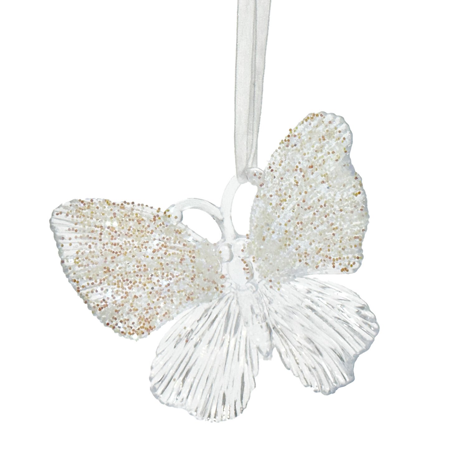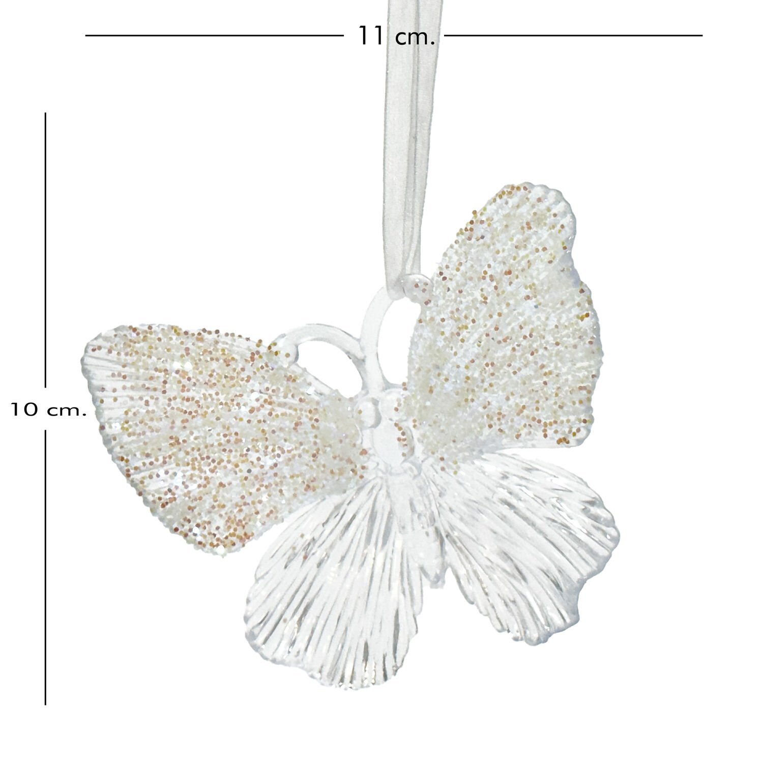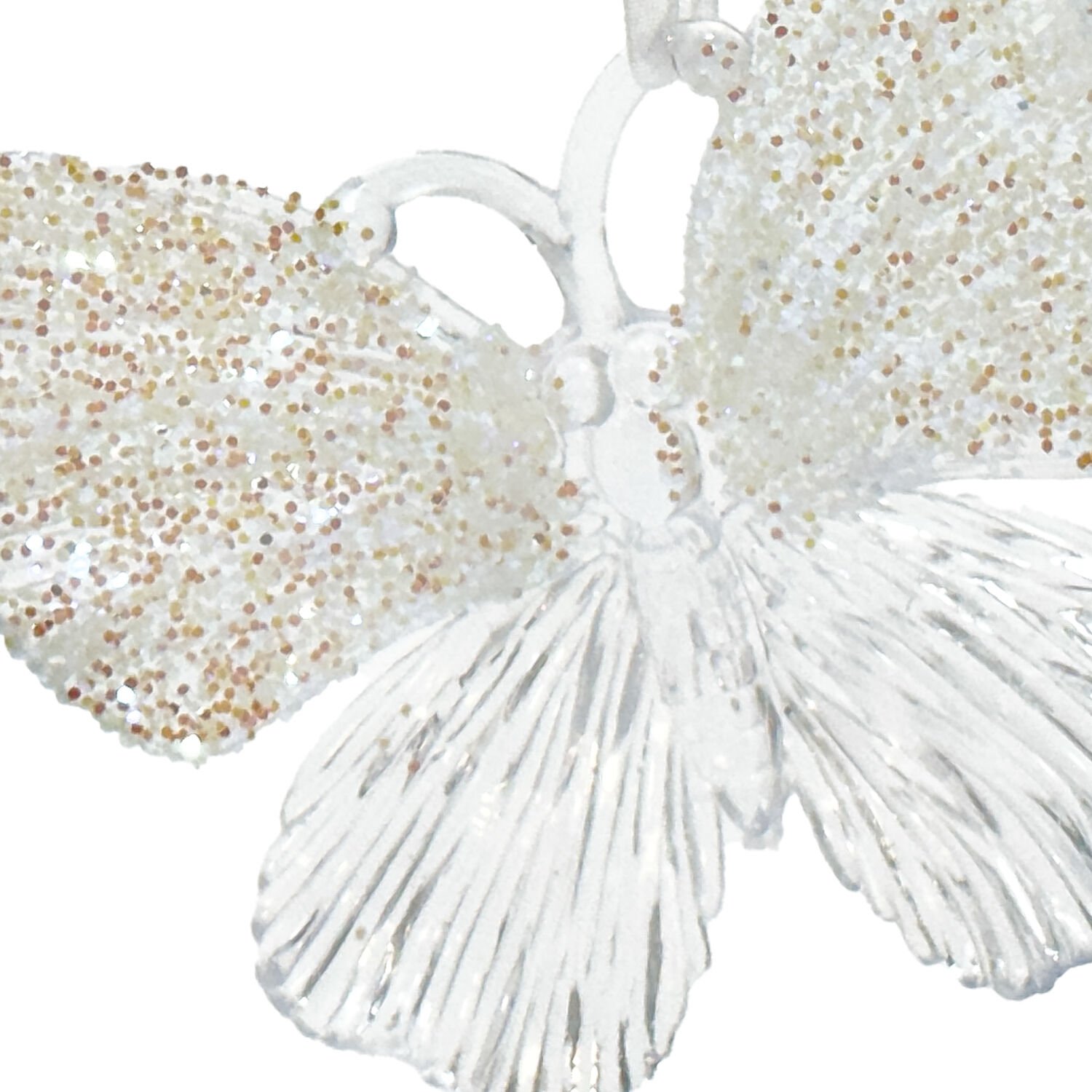 Yılbaşı Süsü, Kelebek, Şeffaf-Gold - Asmalı, Akrilik Cam, Simli Kanatlı, 11x10 cm