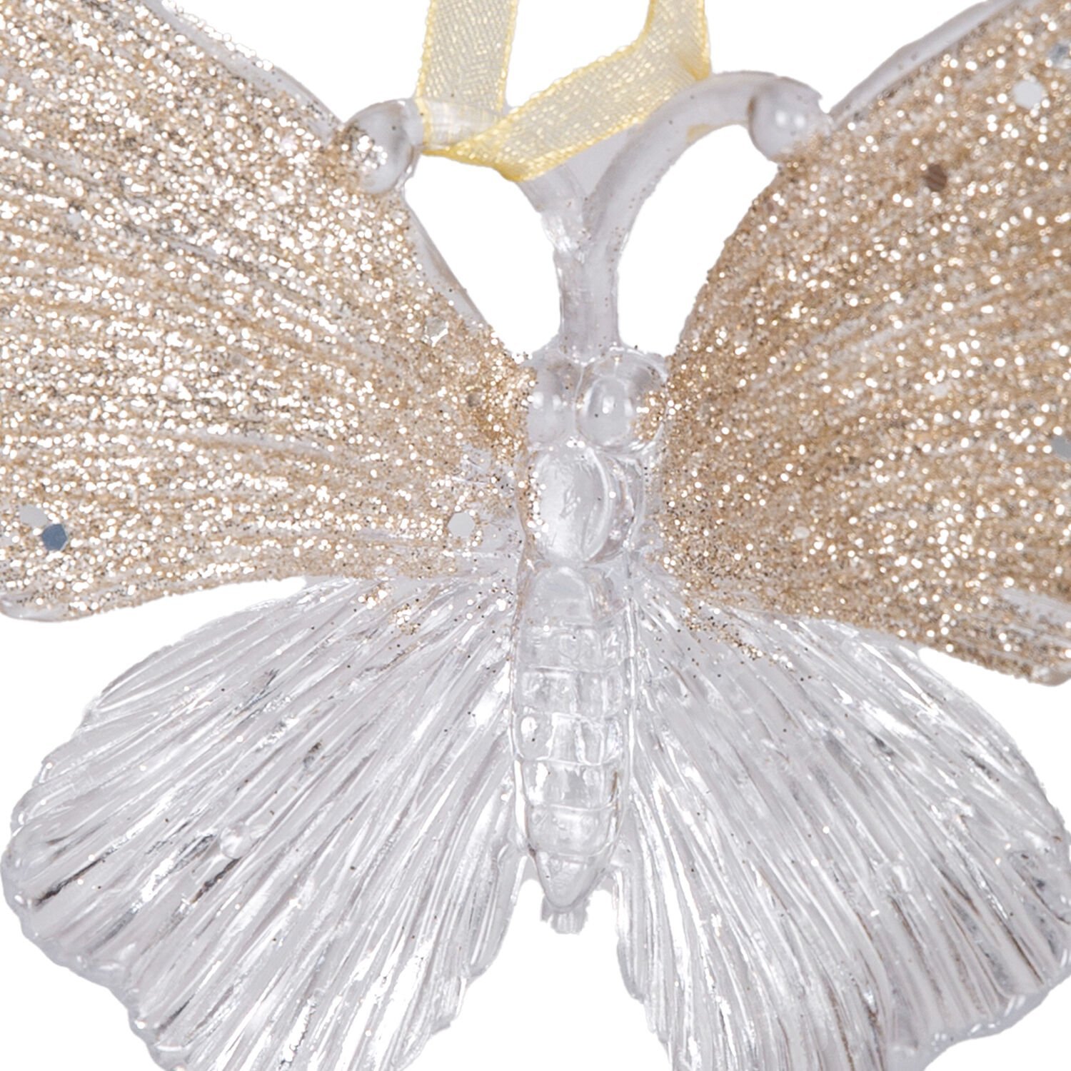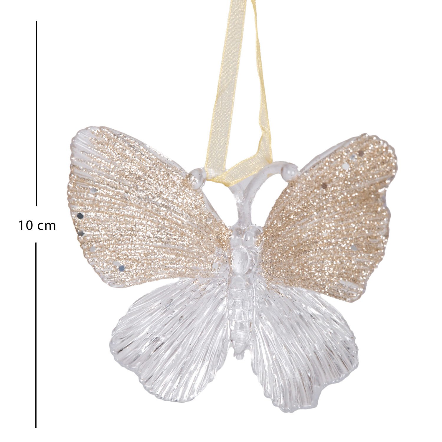 Yılbaşı Süsü, Kelebek, Şeffaf-Şampanya - Asmalı, Akrilik Cam, Simli Kanatlı, 11x10 cm